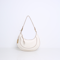 Minimalist with a soft edge. This elegant shoulder bag in light gray leather features a flowing, sculptural shape and subtle contrast stitching that adds a touch of excitement to the design. The slim strap and clean finish give it an effortlessly chic look