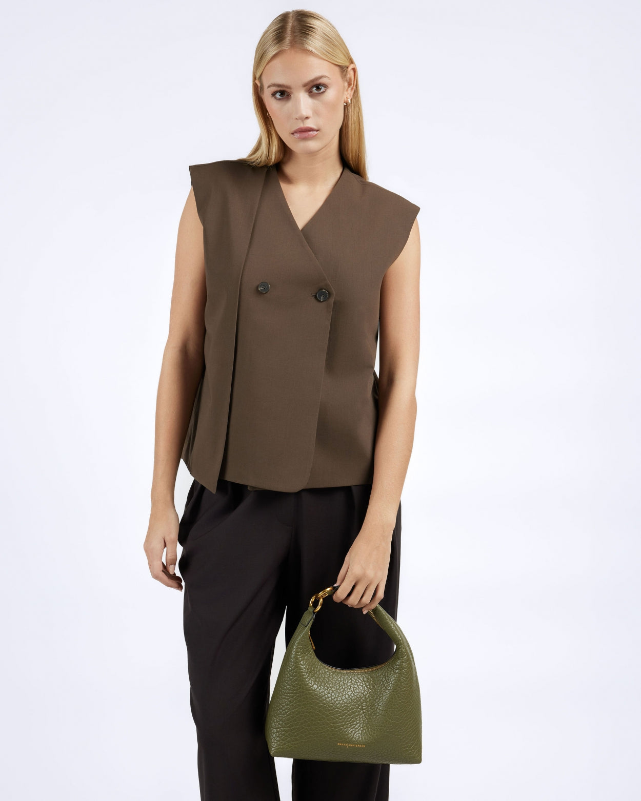 The ARTIE is a crossbody and handbag in one. The ingenious design in attachment allows you to detach the long leather strap from the round hardware. You can then snap these together so you can use the bag as a handbag.