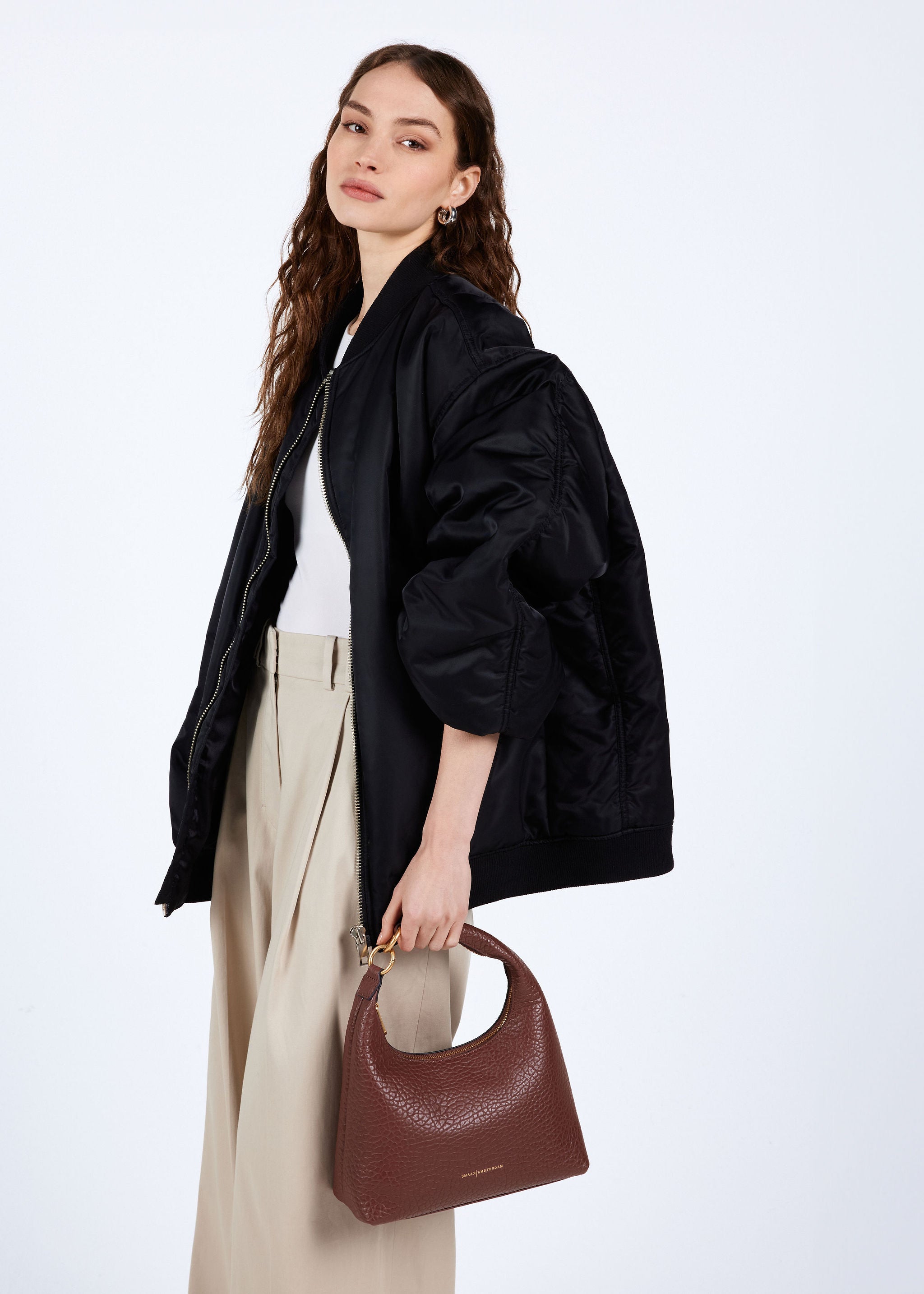 The ARTIE is a crossbody and handbag in one. The ingenious design in attachment allows you to detach the long leather strap from the round hardware. You can then snap these together so you can use the bag as a handbag.