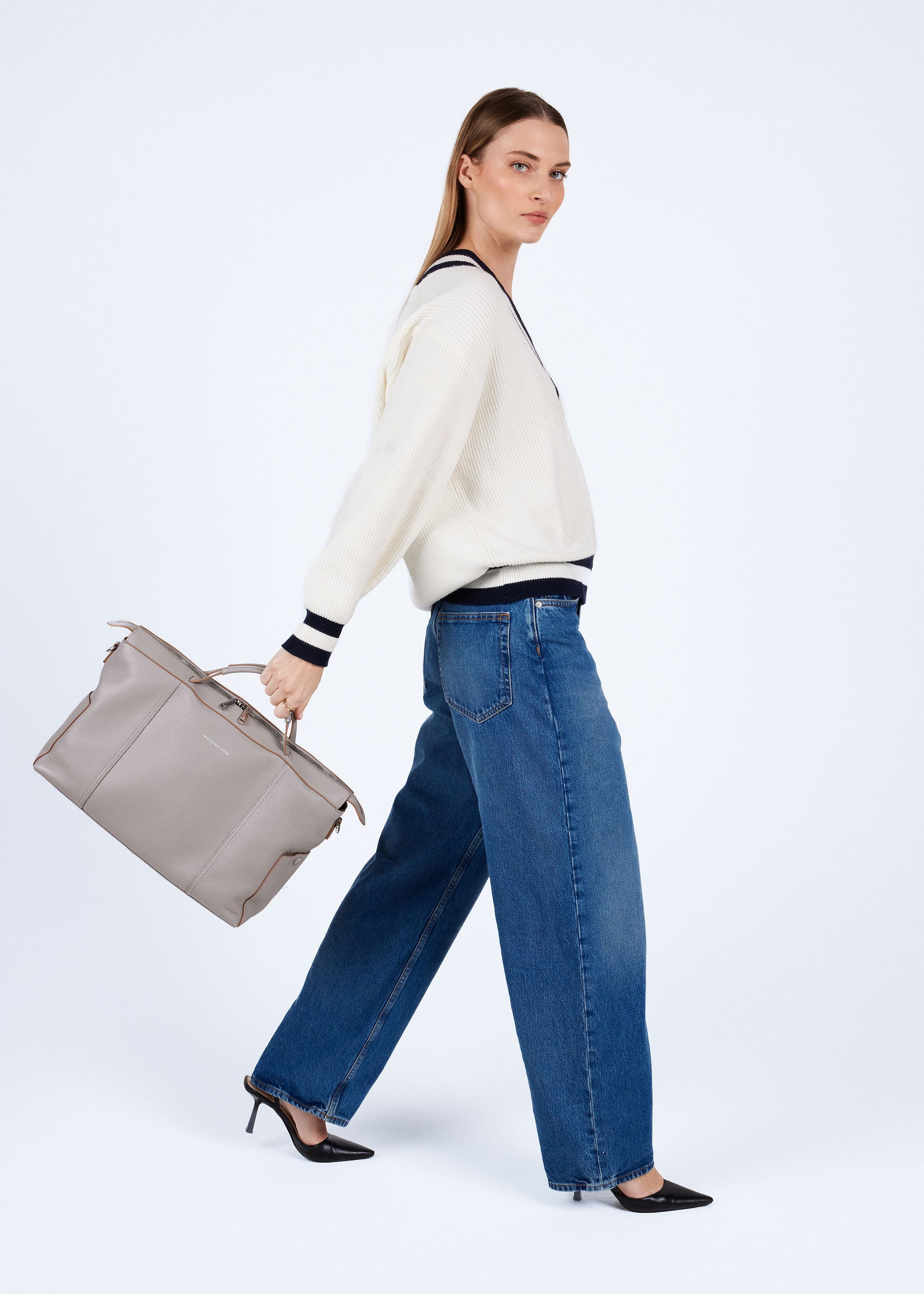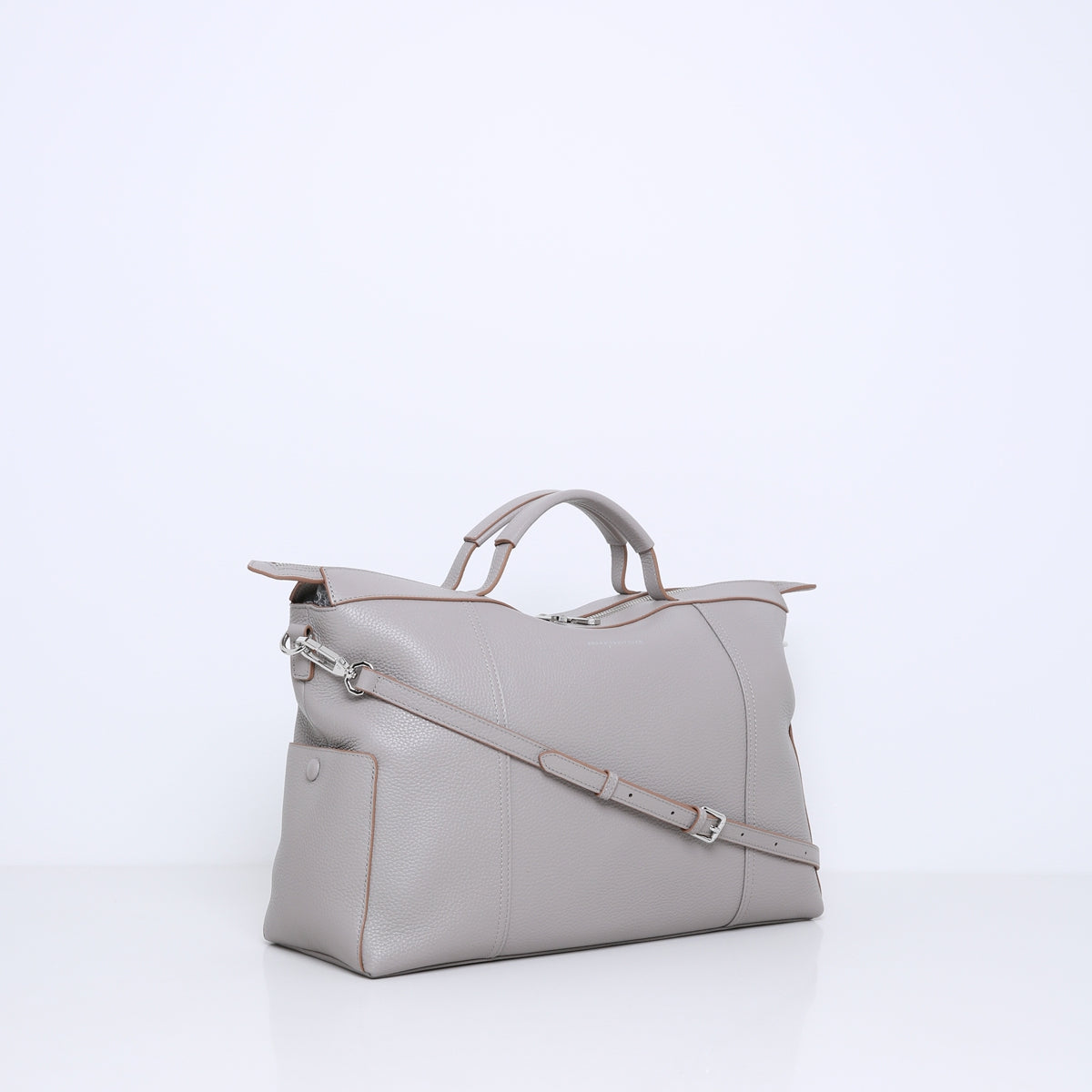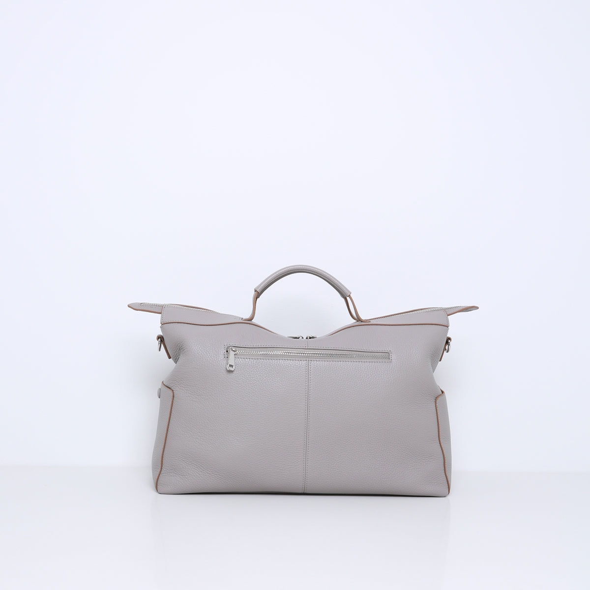 The bag is made of soft supple cowhide leather and is closed at the top with zipper.