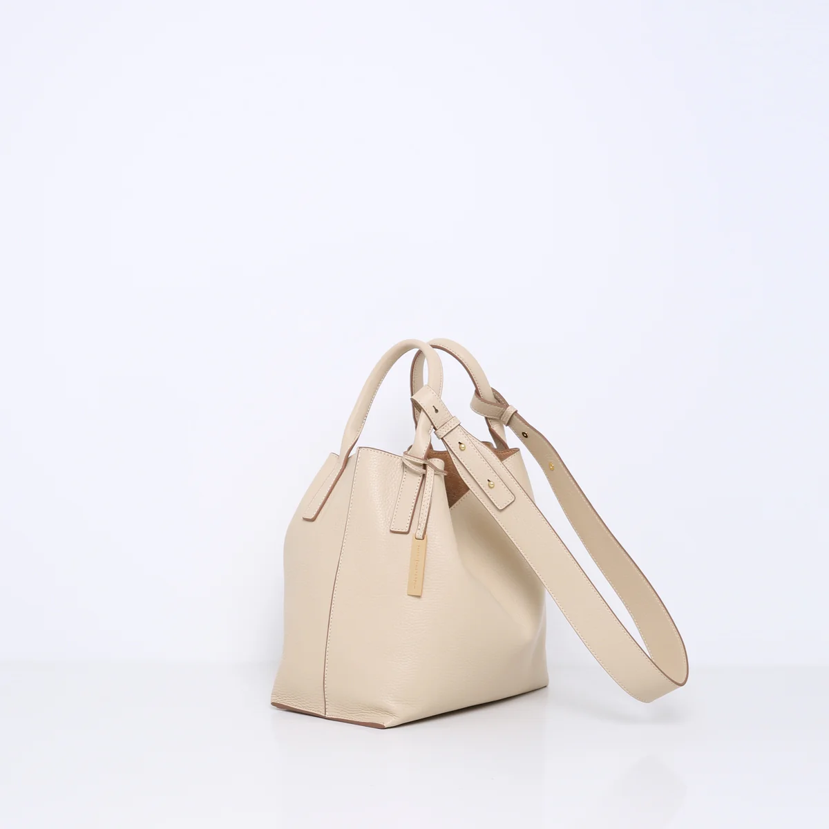 The bag is open at the top and closes in the middle with a practical magnetic closure, giving you easy access to your belongings while keeping them safe. This bag is ideal for everyday use, where you want to combine both fashion and functionality.