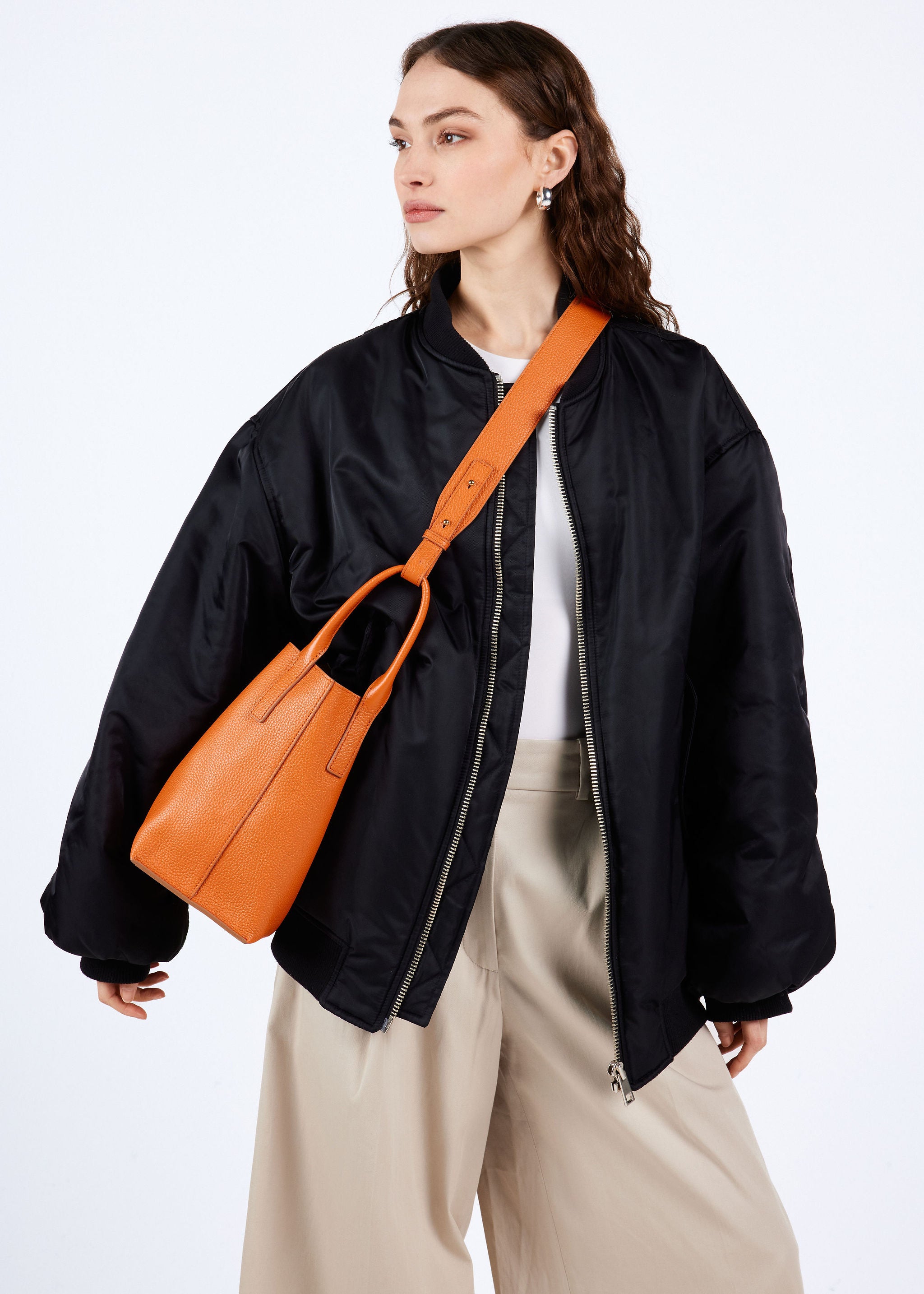 The bag is open at the top and closes in the middle with a practical magnetic closure, giving you easy access to your belongings while keeping them safe. This bag is ideal for everyday use, where you want to combine both fashion and functionality.