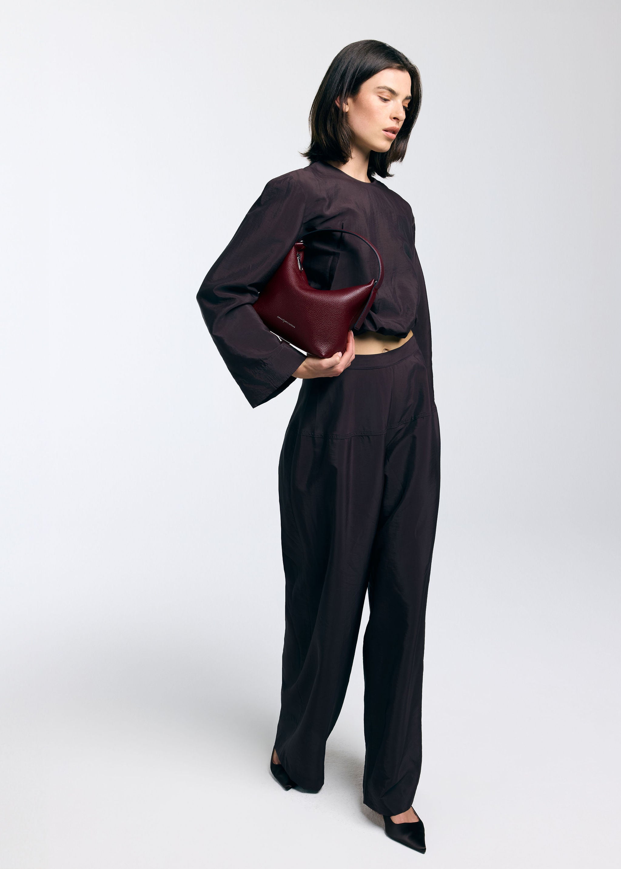 The bag is made of butter-soft supple cowhide leather. Features multiple interior pockets and is lined with suedine (viscose) material. With the detachable, adjustable shoulder strap from 105 cm to 130 cm, you can also wear this handbag as a crossbody bag.