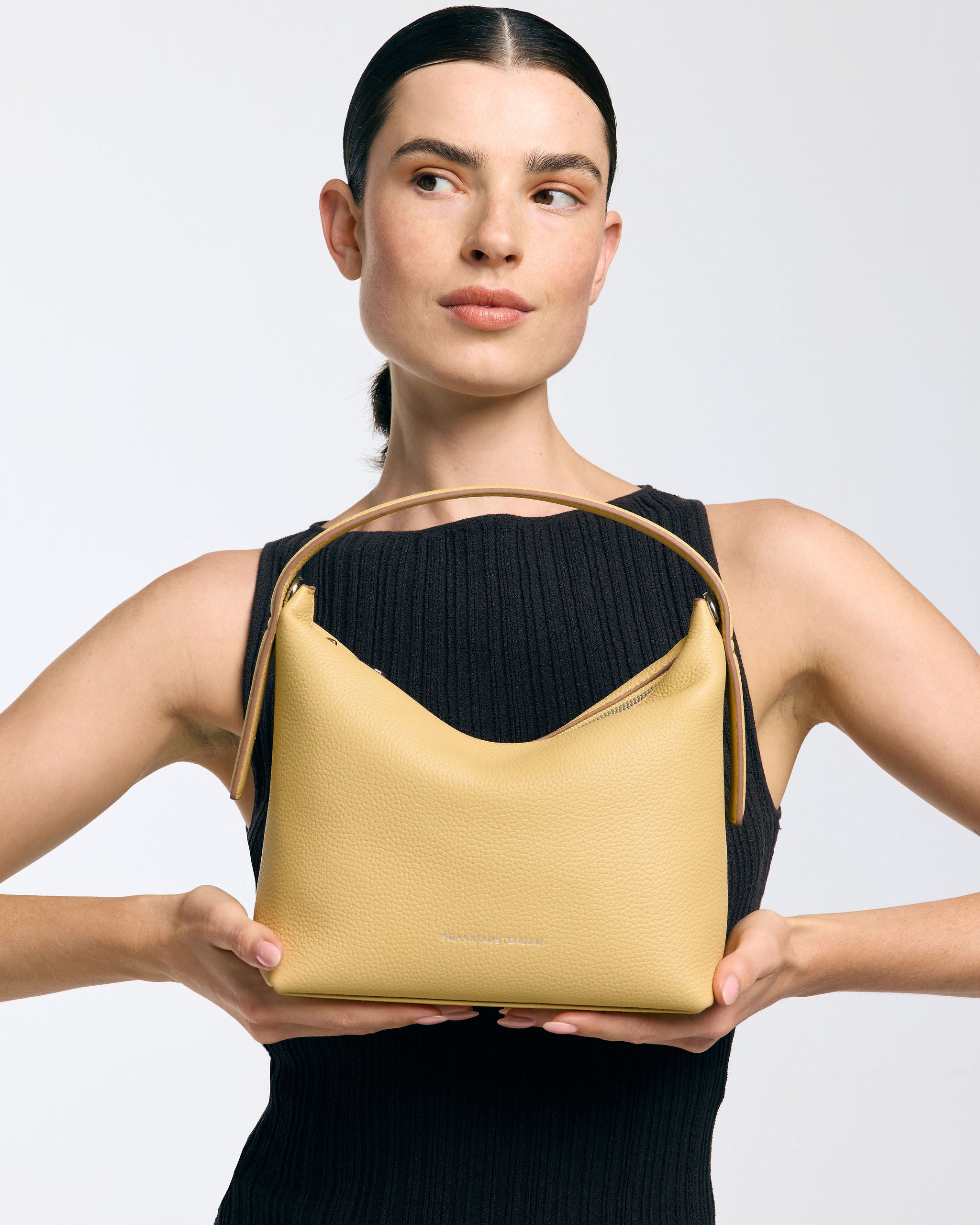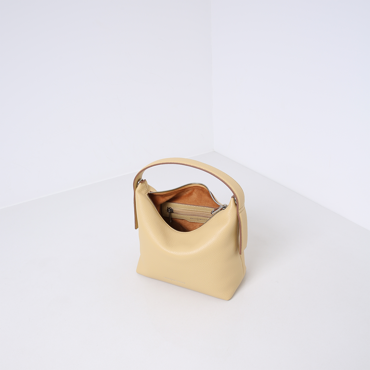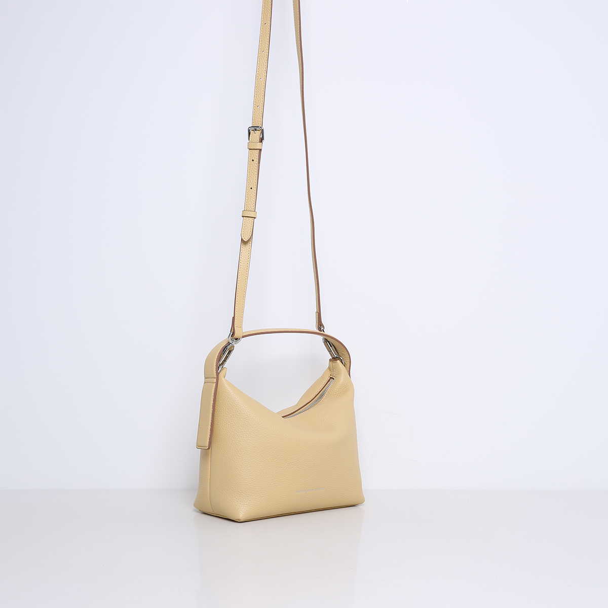 The bag is made of butter-soft supple cowhide leather. Features multiple interior pockets and is lined with suedine (viscose) material. With the detachable, adjustable shoulder strap from 105 cm to 130 cm, you can also wear this handbag as a crossbody bag.
