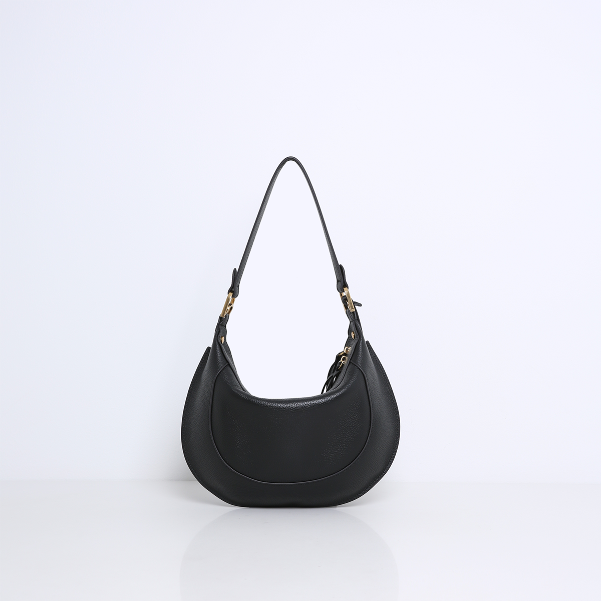 The MARLON is an elegant bag with a distinctive oval saddle bag shape that is instantly eye-catching. The bag is beautifully finished with sophisticated stitching and luxurious gold-tone hardware, creating a chic and modern look.