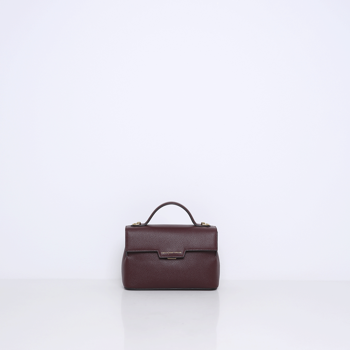 The FLORA has a short handle and a detachable leather crossbody strap that you attach to the top. The handbag opens at the front with a snap closure. There is enough room for all your essentials such as a phone, wallet, (sunglasses) and keys. The rectangular and open shape allows you to easily and conveniently access your belongings.
