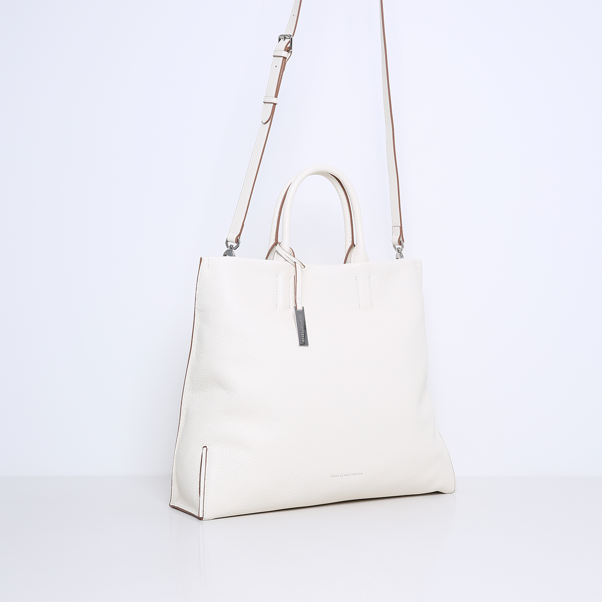 The top is open and closes with a magnetic closure so you can easily access it but still keep your belongings safe. The bag is made of soft and supple cowhide leather. Features multiple interior pockets and is lined with suedine (viscose) material. With the removable, adjustable shoulder strap you can also wear this handbag as a crossbody bag. Suitable for up to 13 Inch laptops.