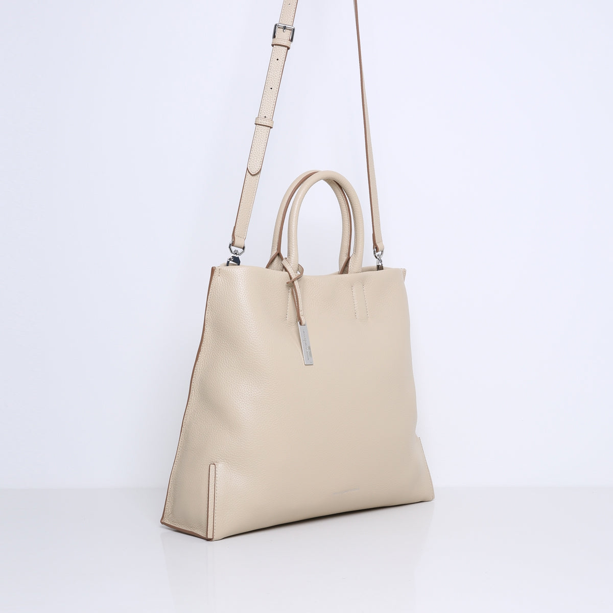 The top is open and closes with a magnetic closure so you can easily access it but still keep your belongings safe. The bag is made of soft and supple cowhide leather. Features multiple interior pockets and is lined with suedine (viscose) material. With the removable, adjustable shoulder strap you can also wear this handbag as a crossbody bag. Suitable for up to 13 Inch laptops.