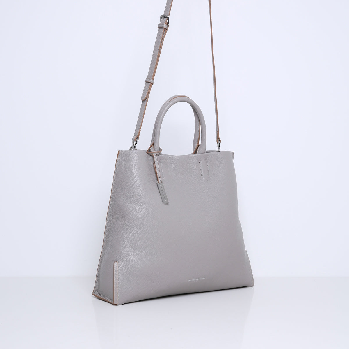 The top is open and closes with a magnetic closure so you can easily access it but still keep your belongings safe. The bag is made of soft and supple cowhide leather. Features multiple interior pockets and is lined with suedine (viscose) material. With the removable, adjustable shoulder strap you can also wear this handbag as a crossbody bag. Suitable for up to 13 Inch laptops.