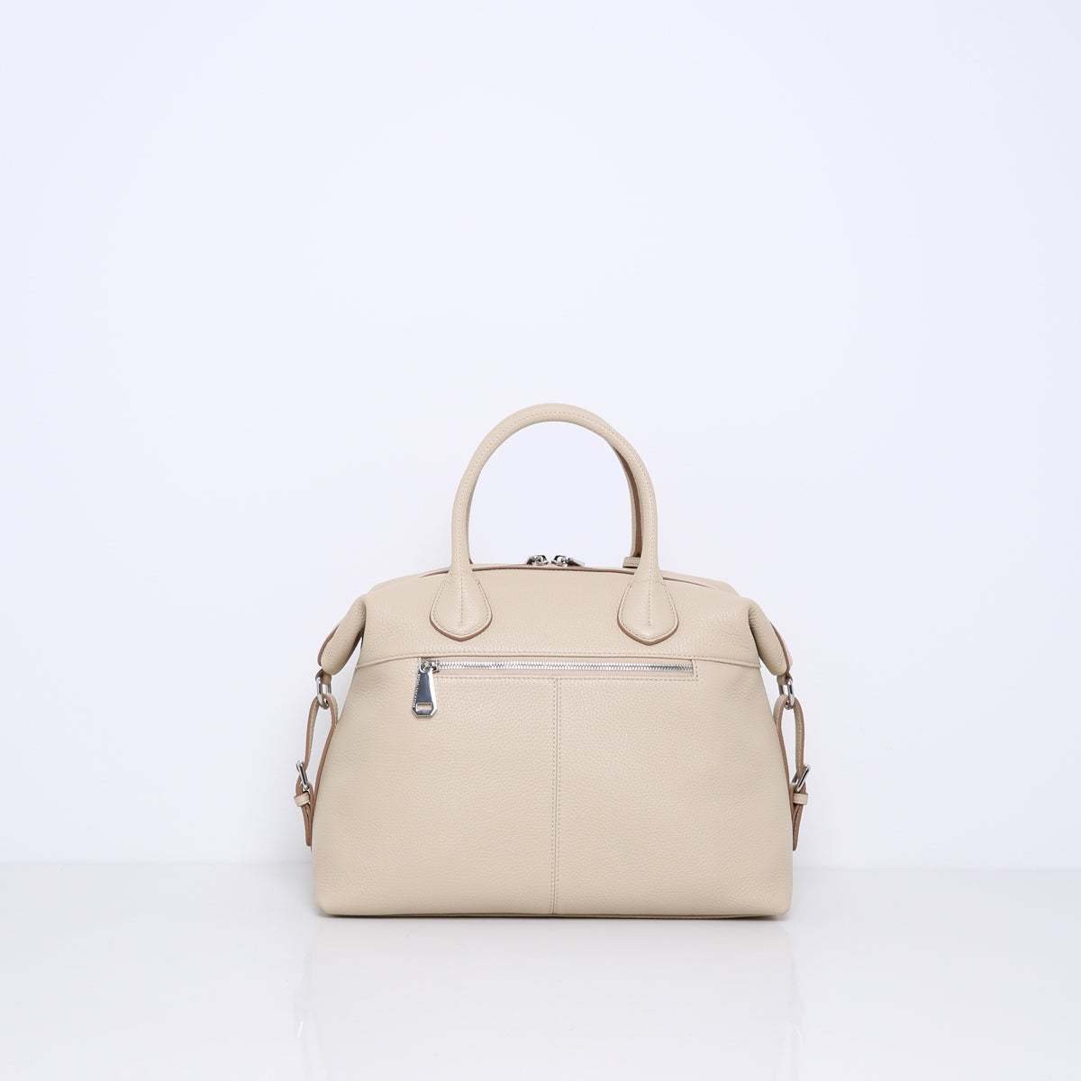 The bag is made of soft and supple cowhide leather. Features multiple interior pockets and is lined with suedine (viscose) material. With the detachable, adjustable leather shoulder strap you can also wear this handbag as a crossbody bag.