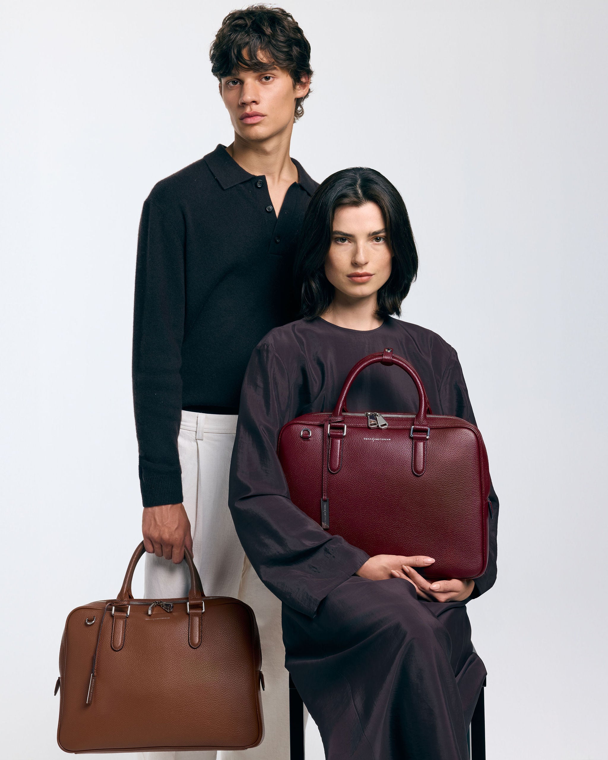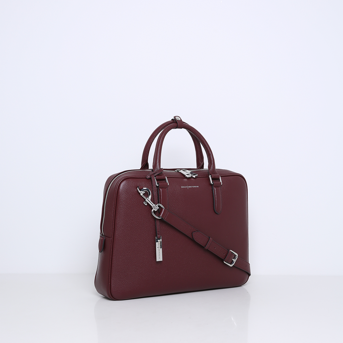 The bag features multiple interior pockets and is lined with suedine (viscose) material. There is a separate laptop compartment suitable for a 13 Inch laptop. The 15 Inch laptop fits in the middle section of the bag. Besides carrying your laptop, there is also space to store documents or other items such as a bottle of water and your essentials. The bag is finished with silver hardware giving it a cool look.