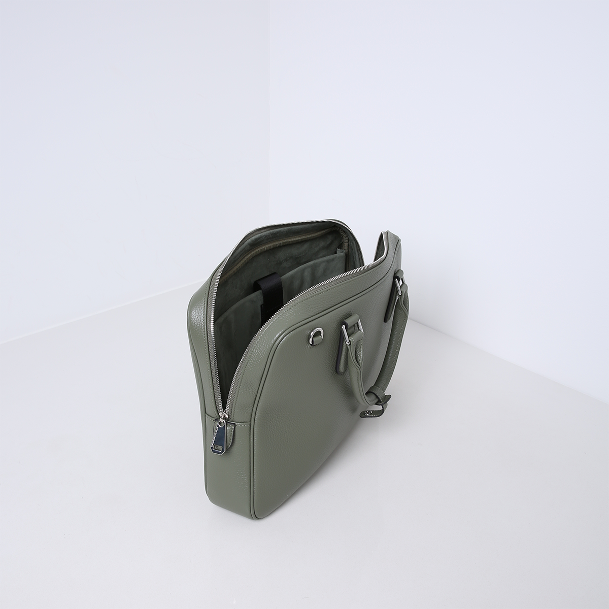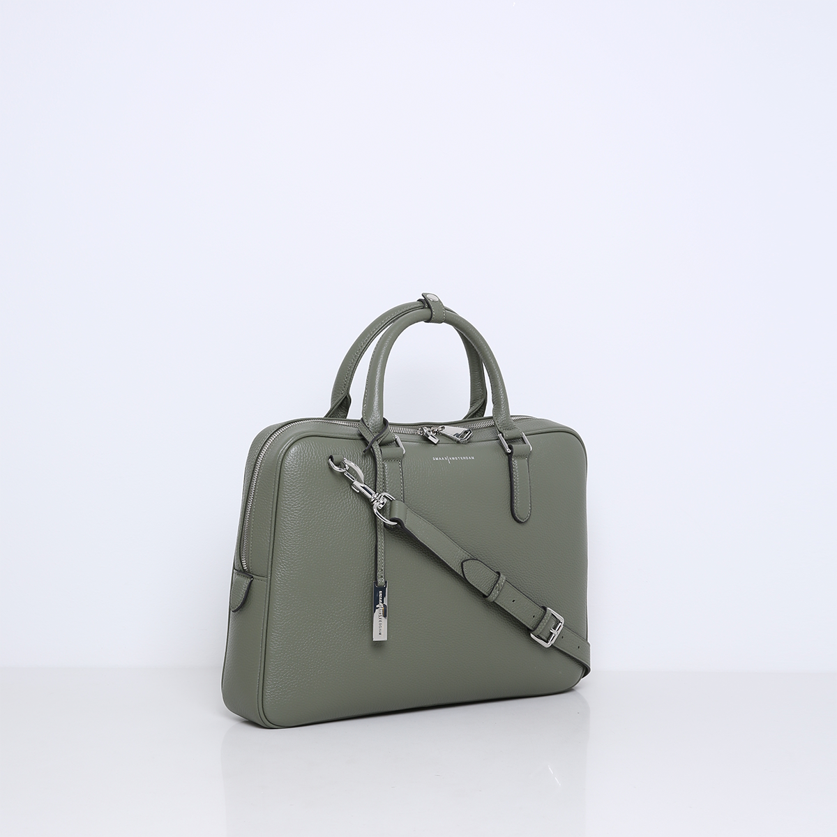 The bag features multiple interior pockets and is lined with suedine (viscose) material. There is a separate laptop compartment suitable for a 13 Inch laptop. The 15 Inch laptop fits in the middle section of the bag. Besides carrying your laptop, there is also space to store documents or other items such as a bottle of water and your essentials. The bag is finished with silver hardware giving it a cool look.