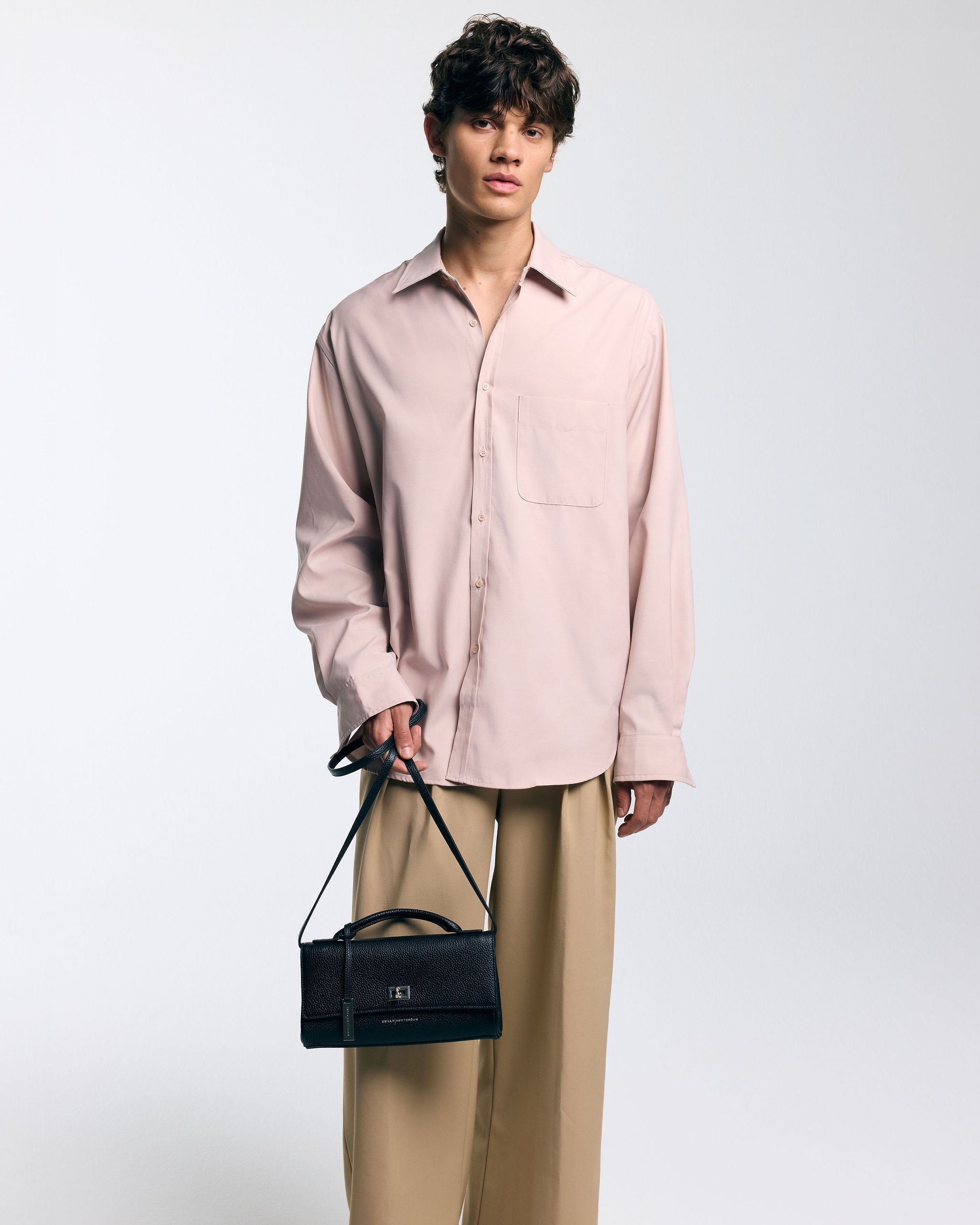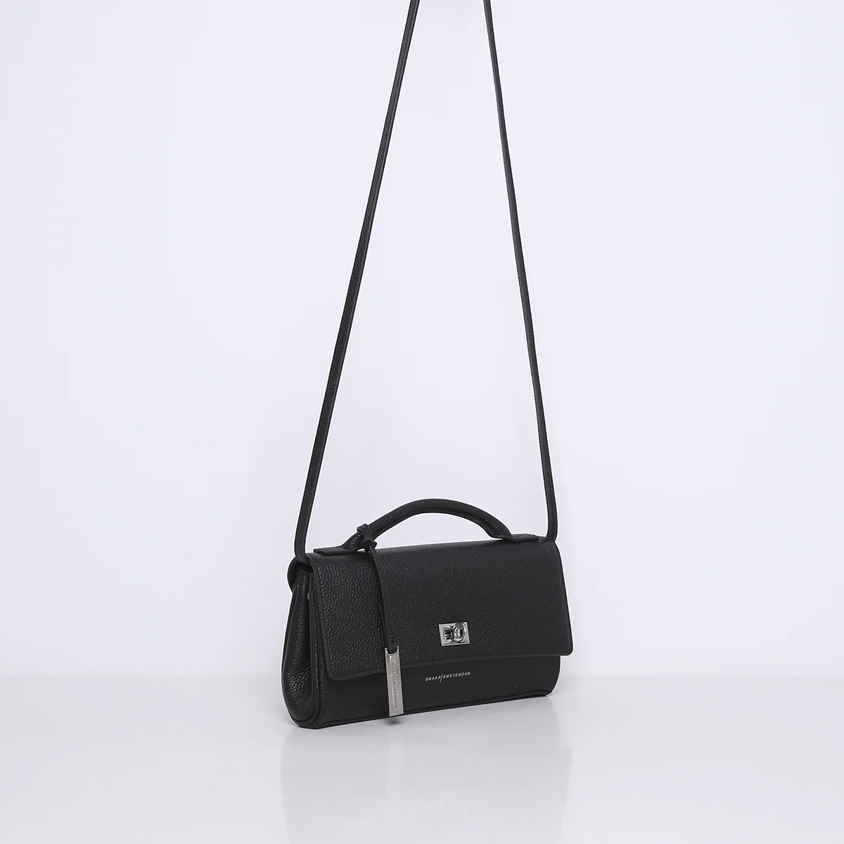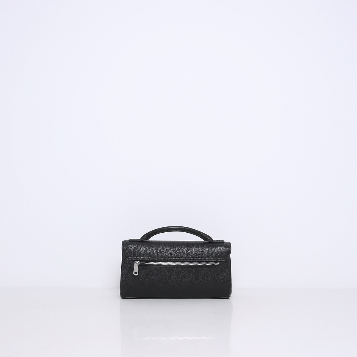 The CHARLTON is a compact and elongated clutch that effortlessly combines elegance and functionality. The sleek silhouette and textured leather give the bag a modern, timeless appeal. The silver-tone closure on the front adds a sophisticated accent, while the fixed handle adds a chic touch when you carry her in your hand.
