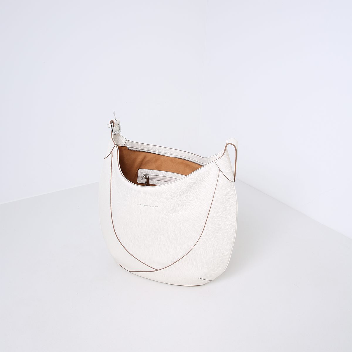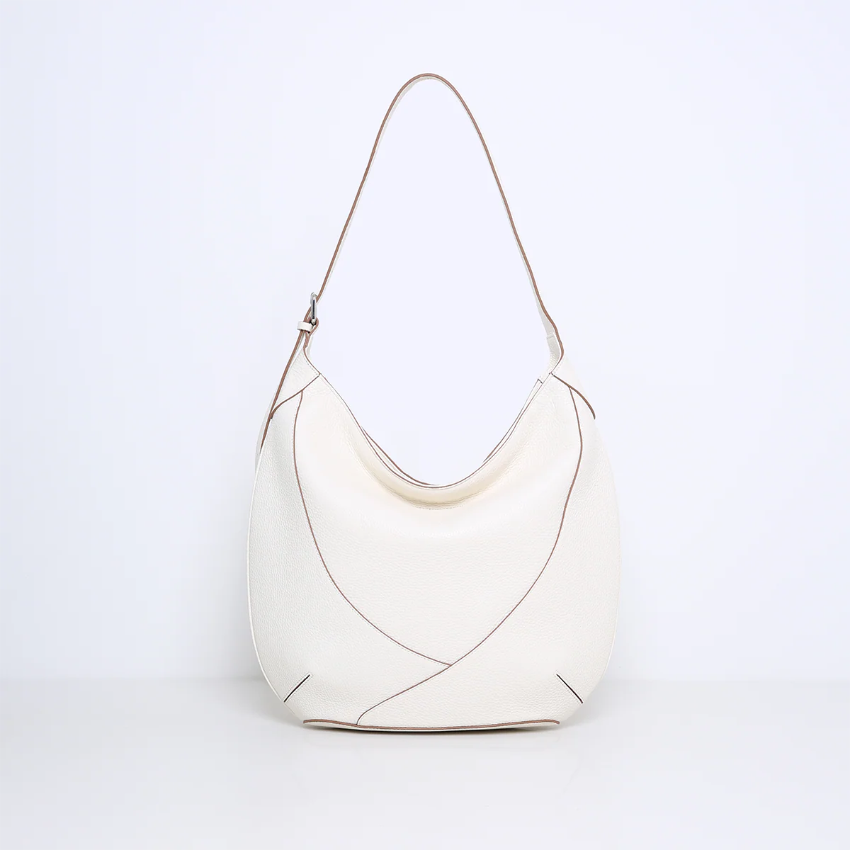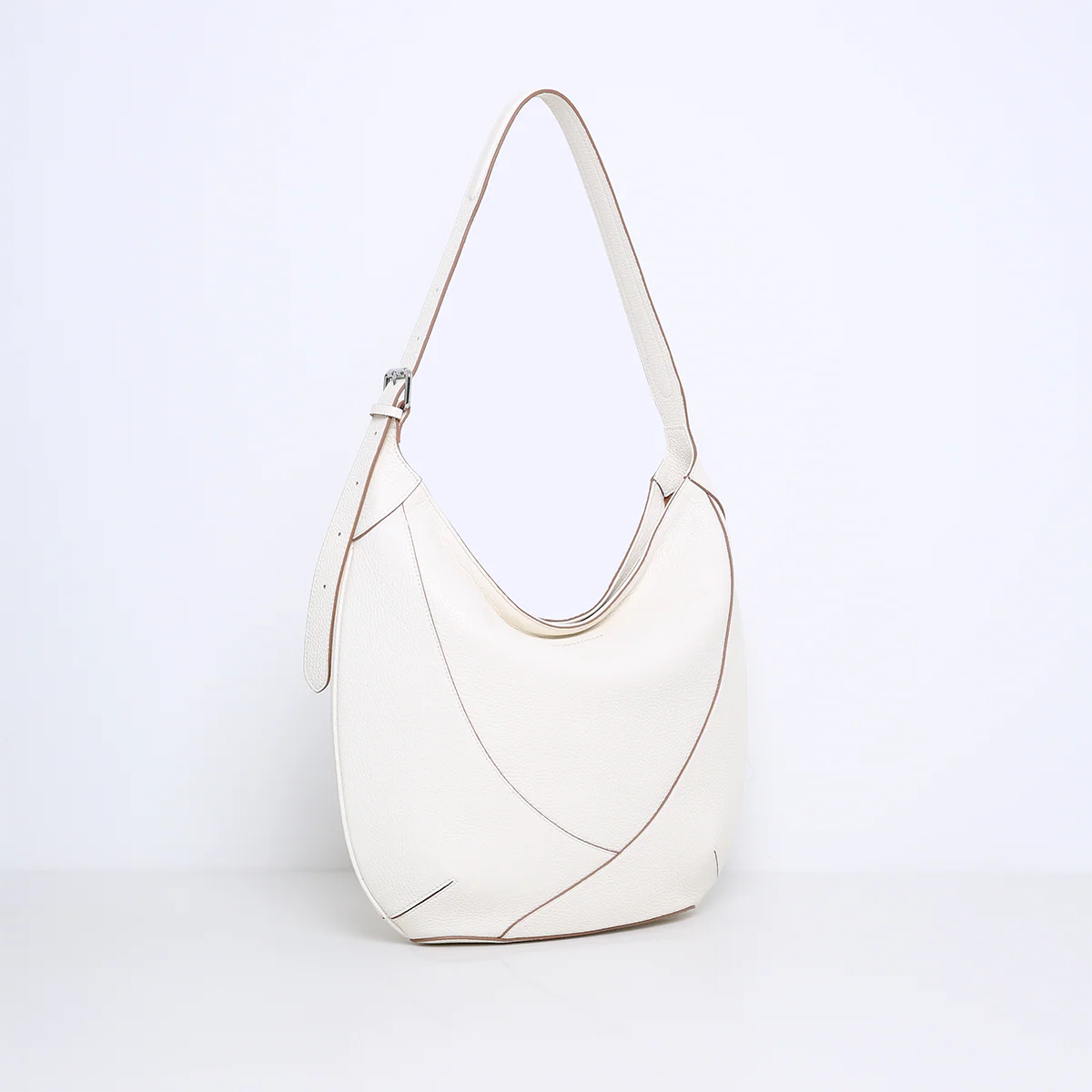 The DREW leather shopper effortlessly combines style with functionality. Its medium size provides ample space for your daily essentials, while its unique design with a semi-circular shape and geometric lines gives both the front and back a contemporary, graphic look.