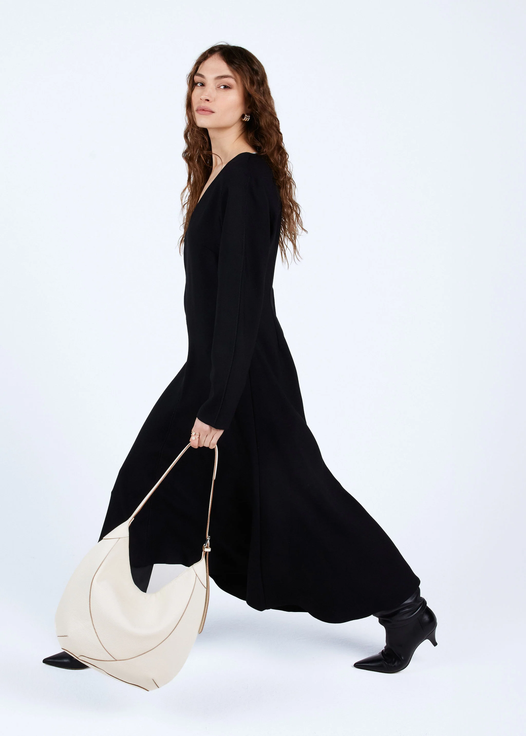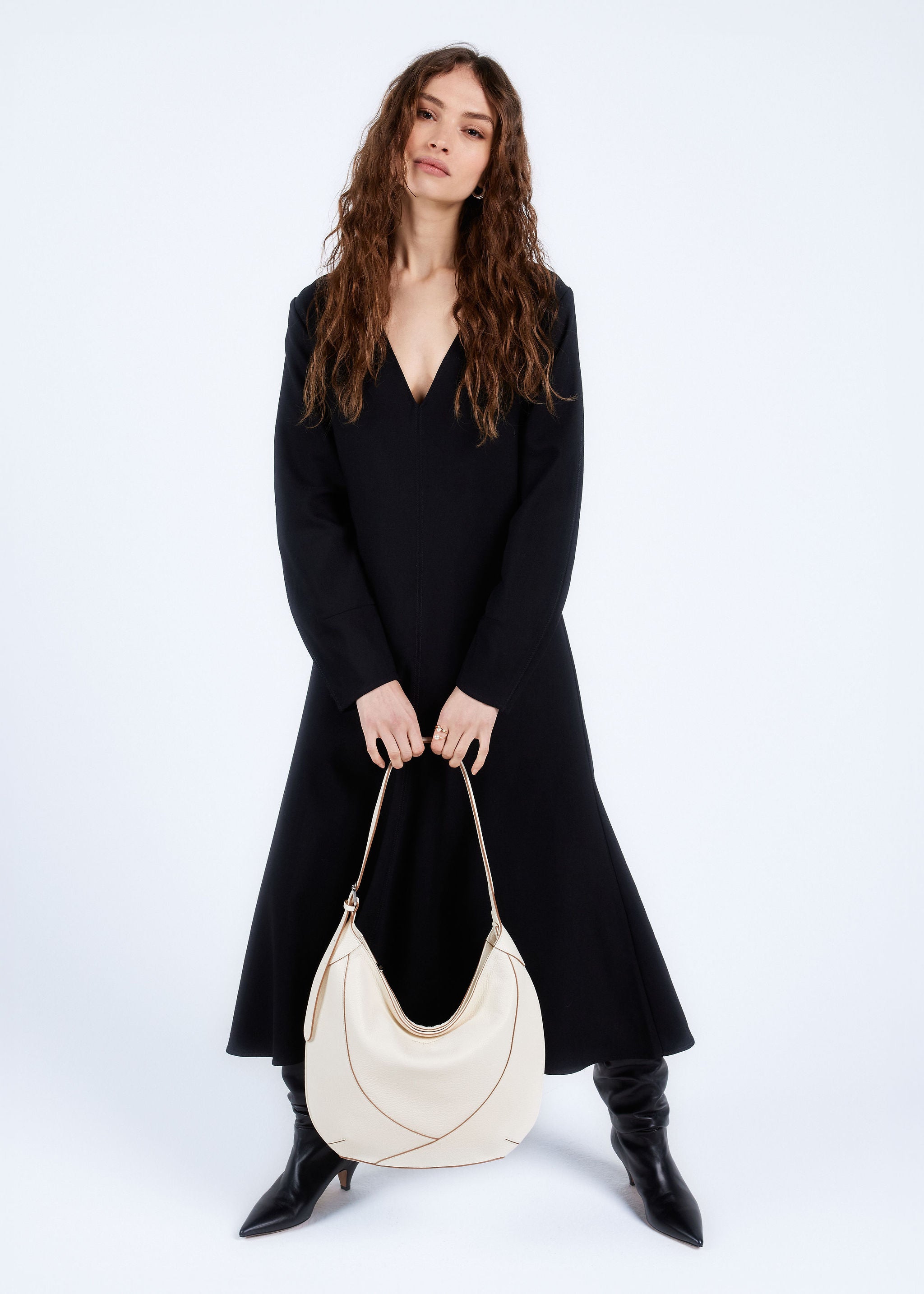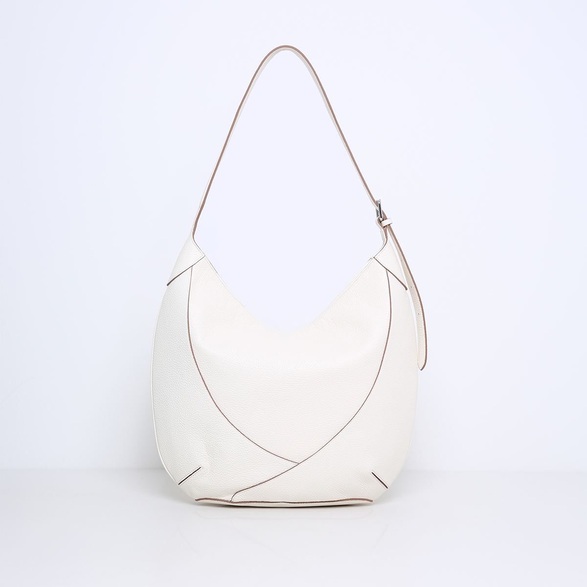 The DREW leather shopper effortlessly combines style with functionality. Its medium size provides ample space for your daily essentials, while its unique design with a semi-circular shape and geometric lines gives both the front and back a contemporary, graphic look.