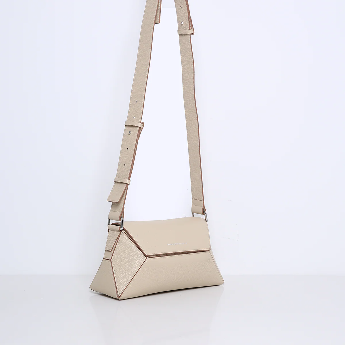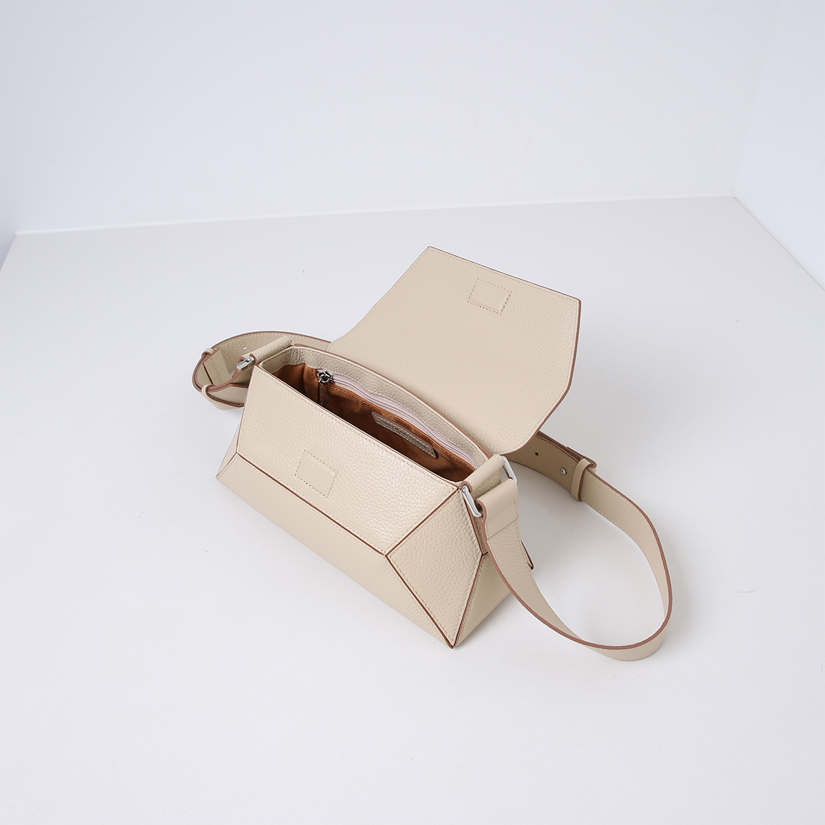 The shoulder strap is adjustable in length and comes with an additional extension, so you can also wear the bag across your body at an angle for added comfort and style. Inside, there is a handy extra zippered pocket for safely storing your smaller items. This bag is the perfect balance of elegance, modernity and playfulness.