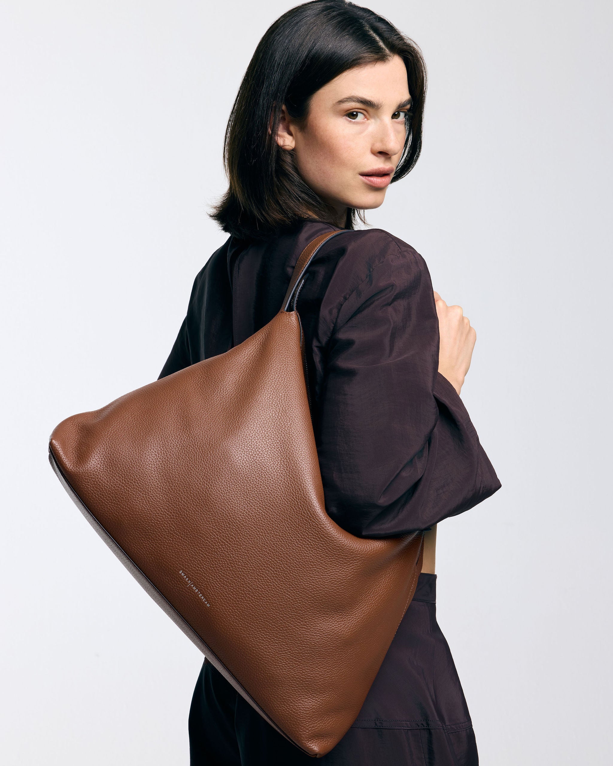 Made of supple grained leather, the LINDA naturally molds to its contents, creating a casual, contemporary look. The comfortable handle makes it easy to carry her over the shoulder, while the accessible design invites you to carry her every day.