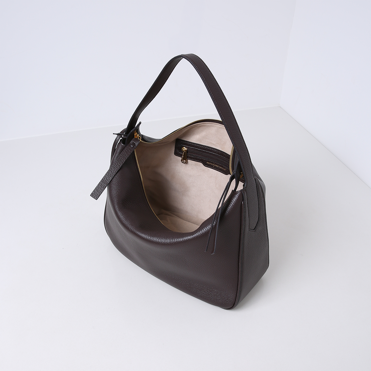 The MONROE is the bigger sister of our Daniel bag, an elegant medium-sized hobo bag that effortlessly combines style and functionality. The bag is beautifully finished with a luxurious gold-tone zipper and has a fixed short strap, allowing you to carry her comfortably over the shoulder. In addition, the bag comes with an extra long strap, so you can also wear her perfectly crossbody. The refined detail on the side makes the MONROE really stand out and adds a chic, unique touch to any outfit.
