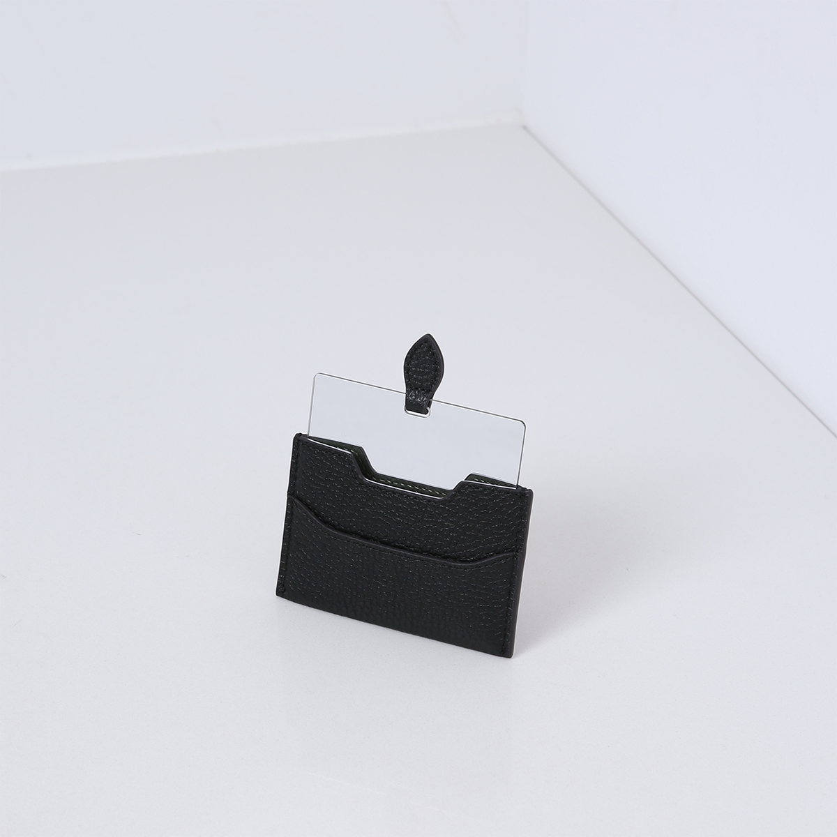 Meet your ultimate everyday companion: a sophisticated card holder with a hidden extra. Designed for the modern multitasker, this compact accessory combines style and functionality. Keep your cards organized in the elegant compartments and never miss a moment to shine thanks to the discreet mirror inside - perfect for quick touch-ups on the go.
