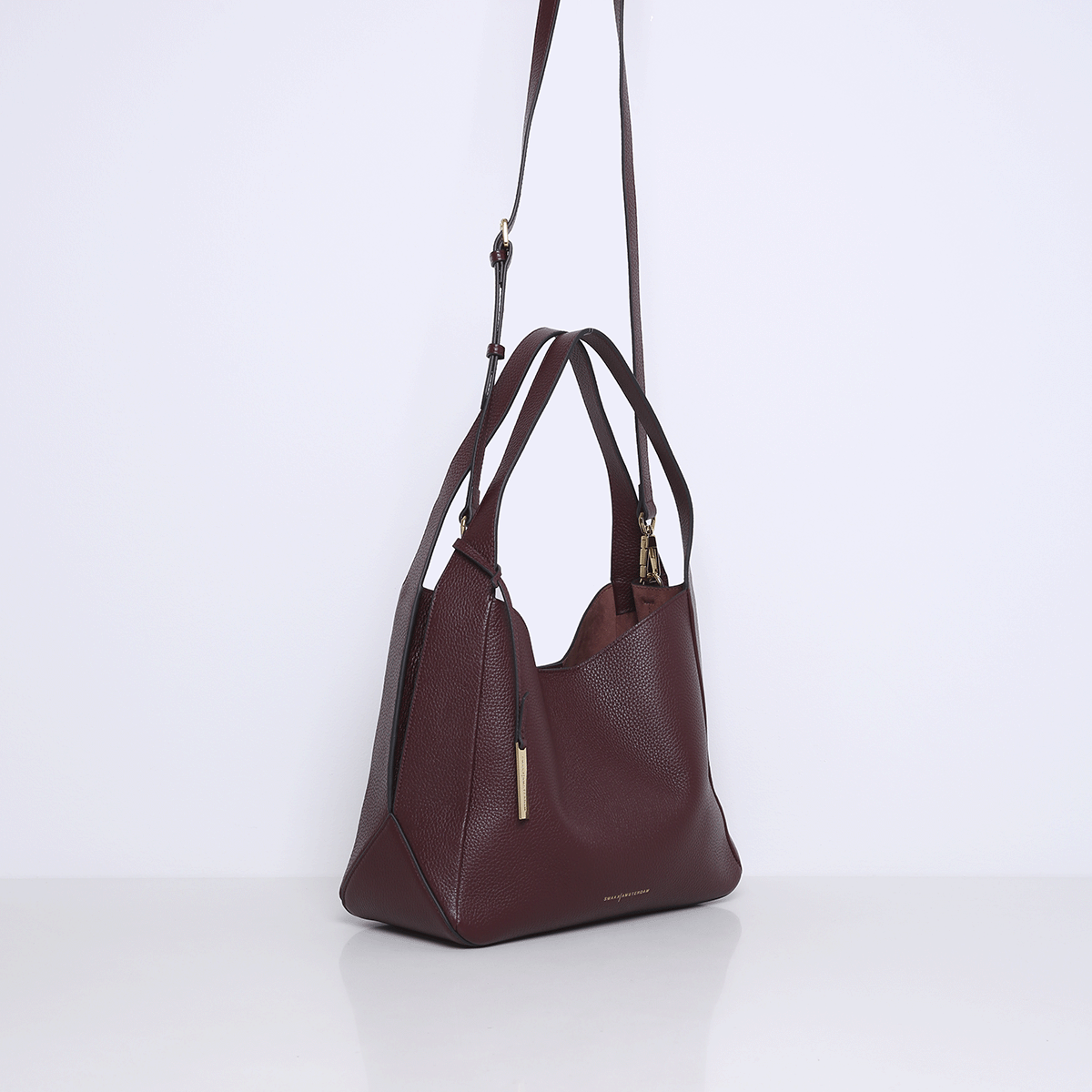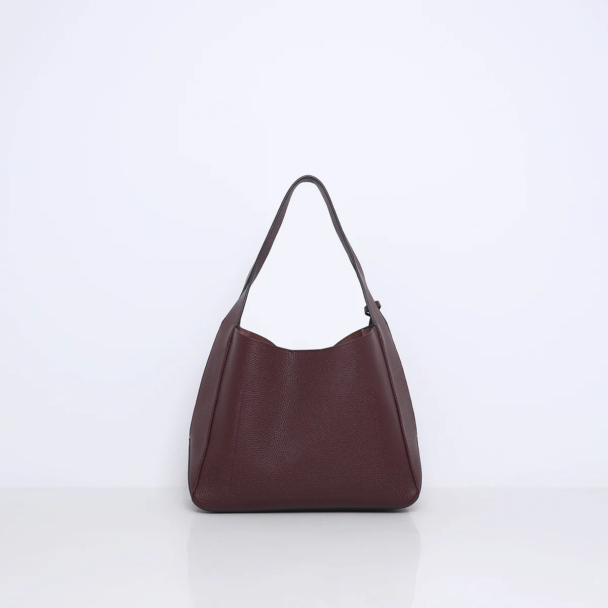The handbag has two sturdy leather handles that seamlessly transition to the sides of the bag where they end in a stylish split. These splits not only add a sophisticated detail, but also provide extra flexibility and comfort when carrying. This large model is perfect for everyday use, with enough space for all your essentials including a 13 Inch laptop without a sleeve. The bag can be worn either in the hand or crossbody thanks to a detachable and adjustable shoulder strap.