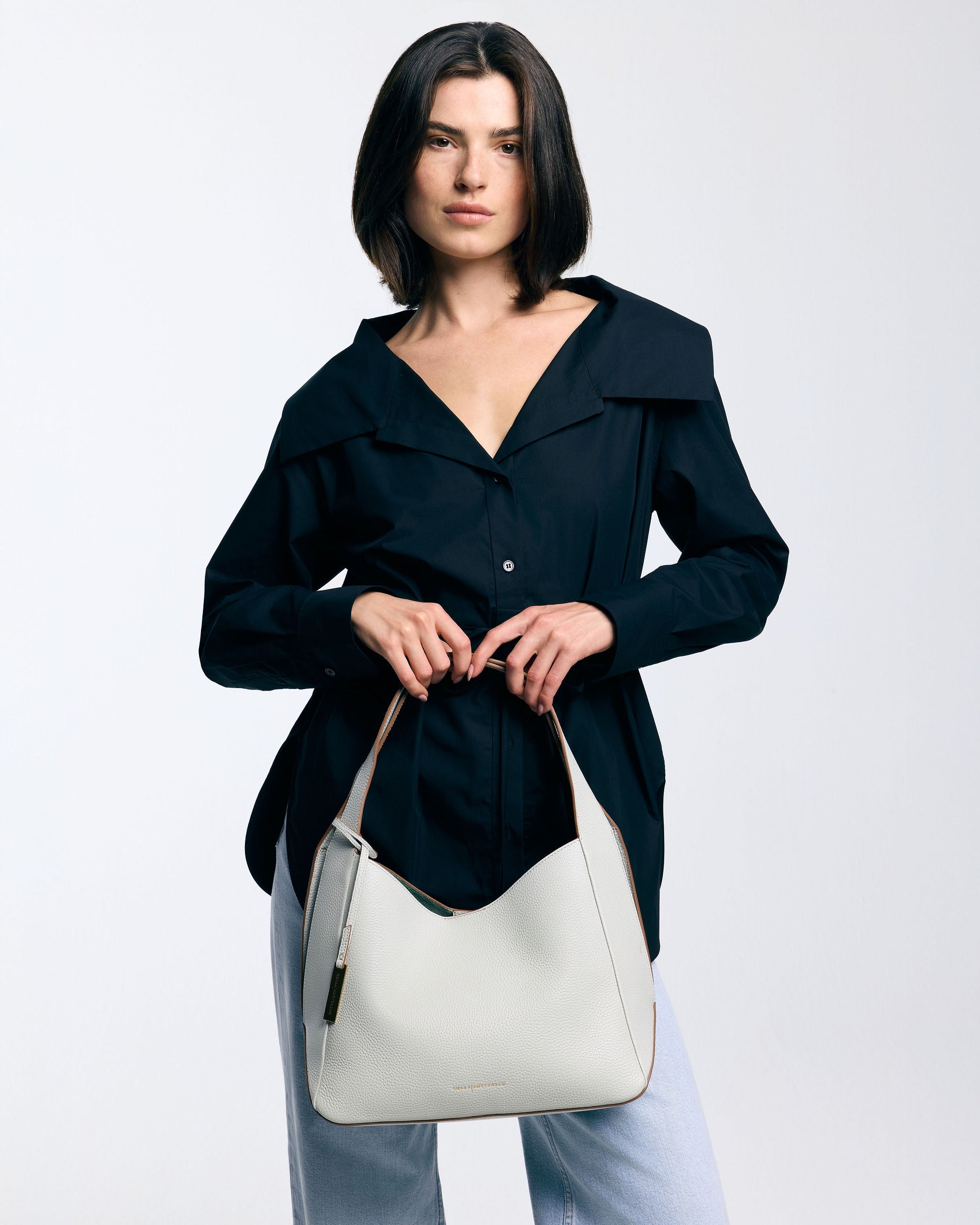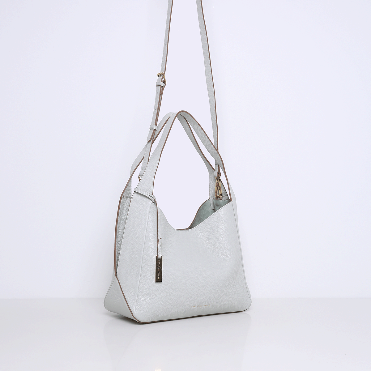 The handbag has two sturdy leather handles that seamlessly transition to the sides of the bag where they end in a stylish split. These splits not only add a sophisticated detail, but also provide extra flexibility and comfort when carrying. This large model is perfect for everyday use, with enough space for all your essentials including a 13 Inch laptop without a sleeve. The bag can be worn either in the hand or crossbody thanks to a detachable and adjustable shoulder strap.