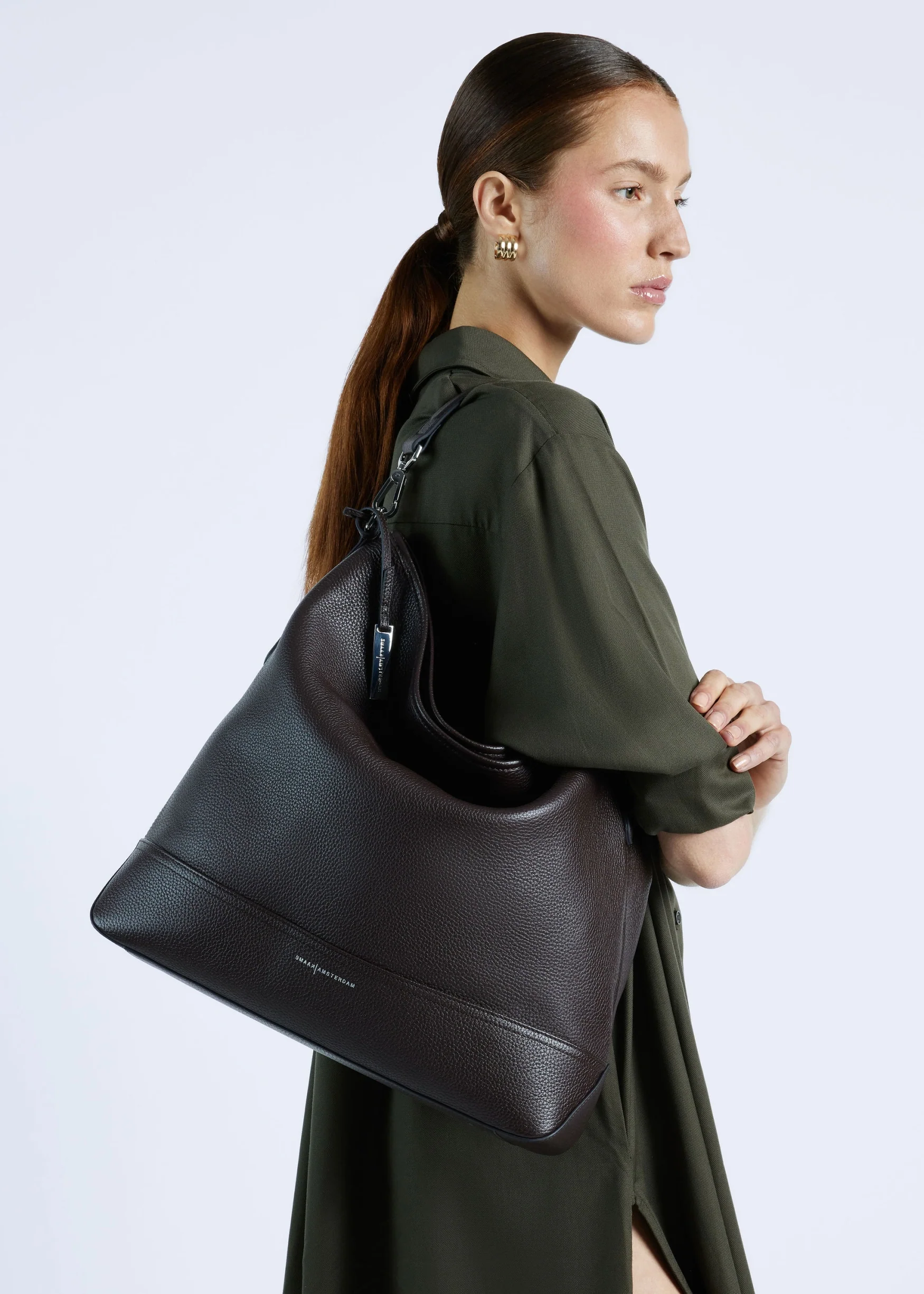 It is a classic hobo bag usually carried over the shoulder with a single wide strap that rests comfortably on the shoulder.