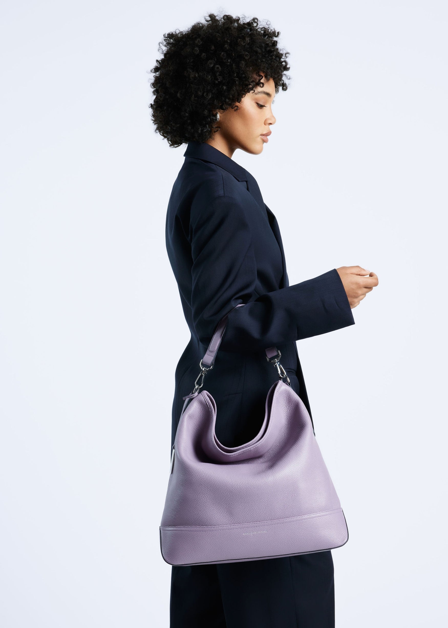 It is a classic hobo bag usually carried over the shoulder with a single wide strap that rests comfortably on the shoulder.