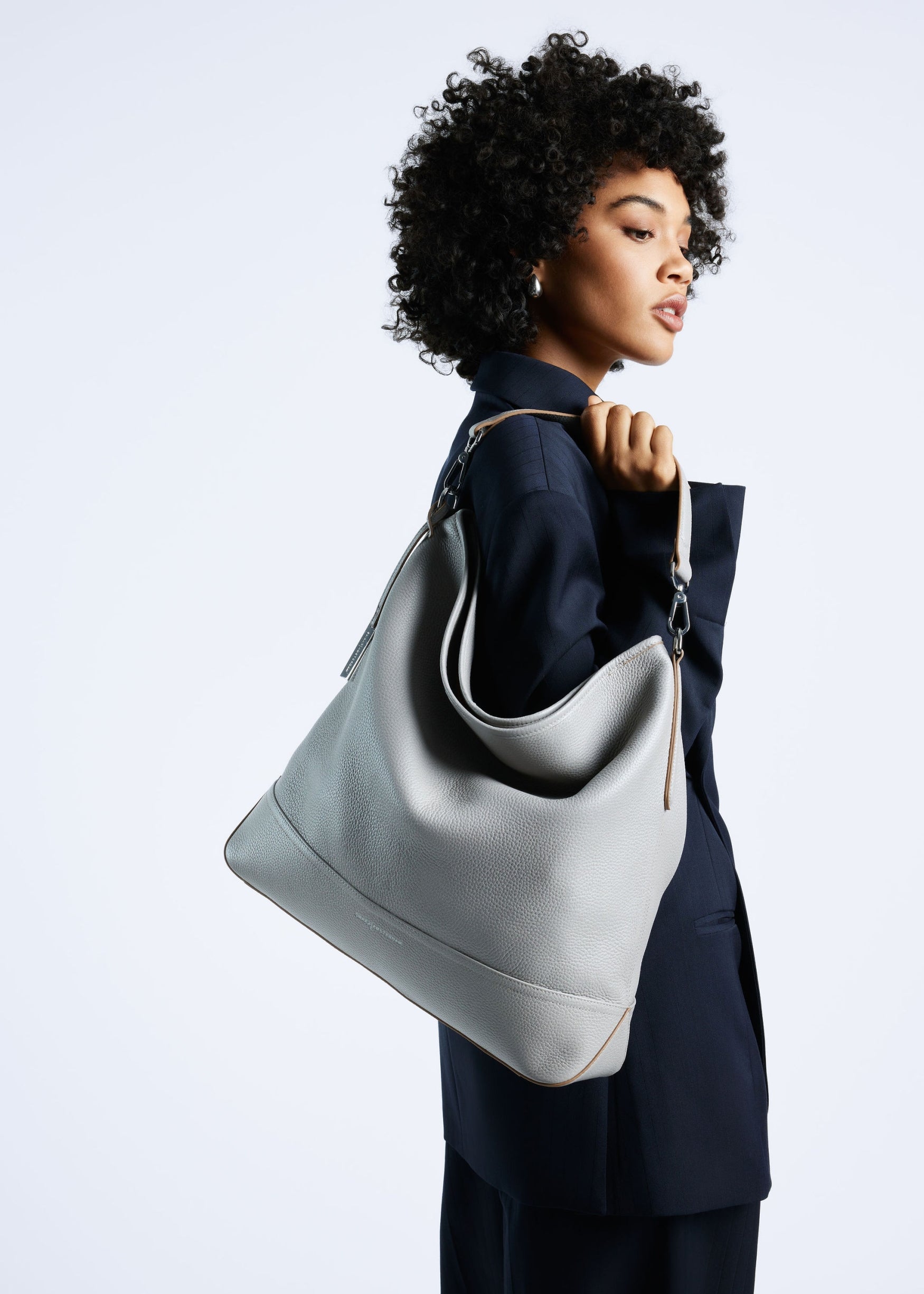 It is a classic hobo bag usually carried over the shoulder with a single wide strap that rests comfortably on the shoulder.