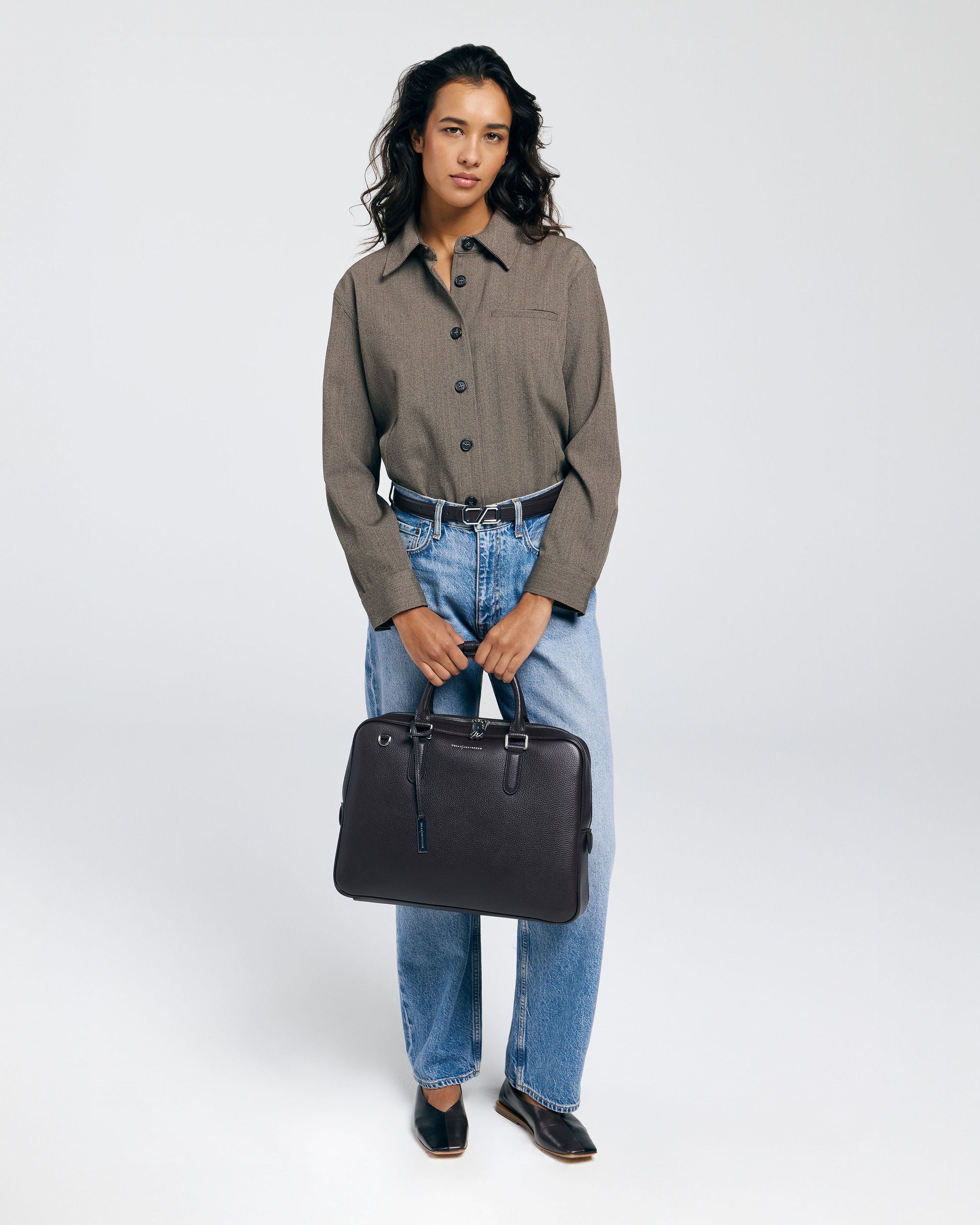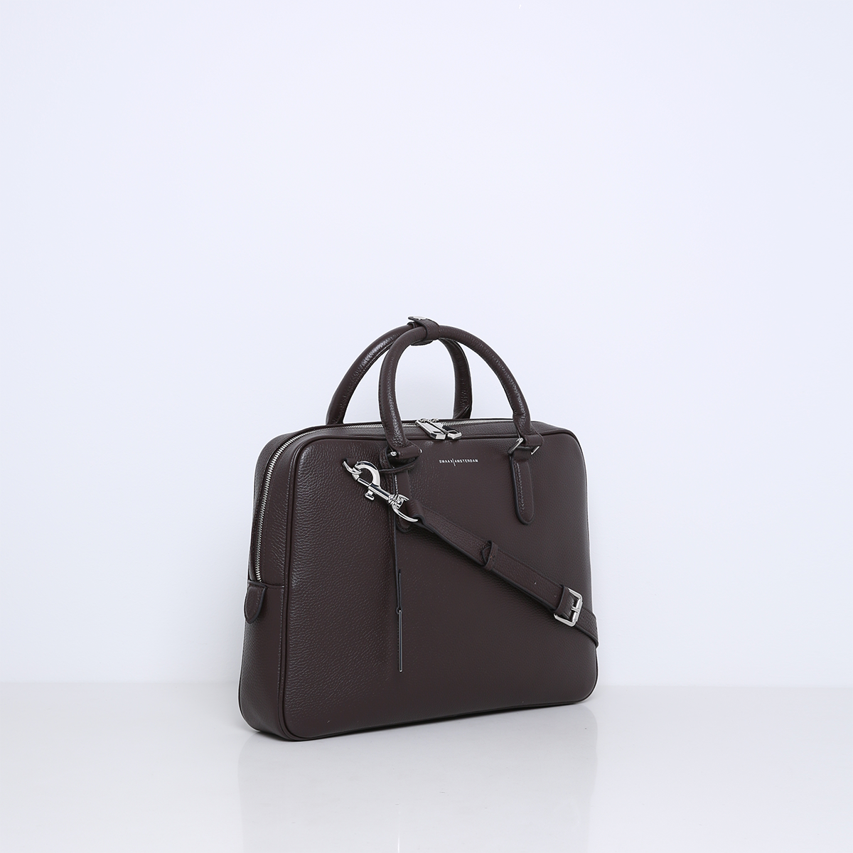 The bag features multiple interior pockets and is lined with suedine (viscose) material. There is a separate laptop compartment suitable for a 13 Inch laptop. The 15 Inch laptop fits in the middle section of the bag. Besides carrying your laptop, there is also space to store documents or other items such as a bottle of water and your essentials. The bag is finished with silver hardware giving it a cool look.