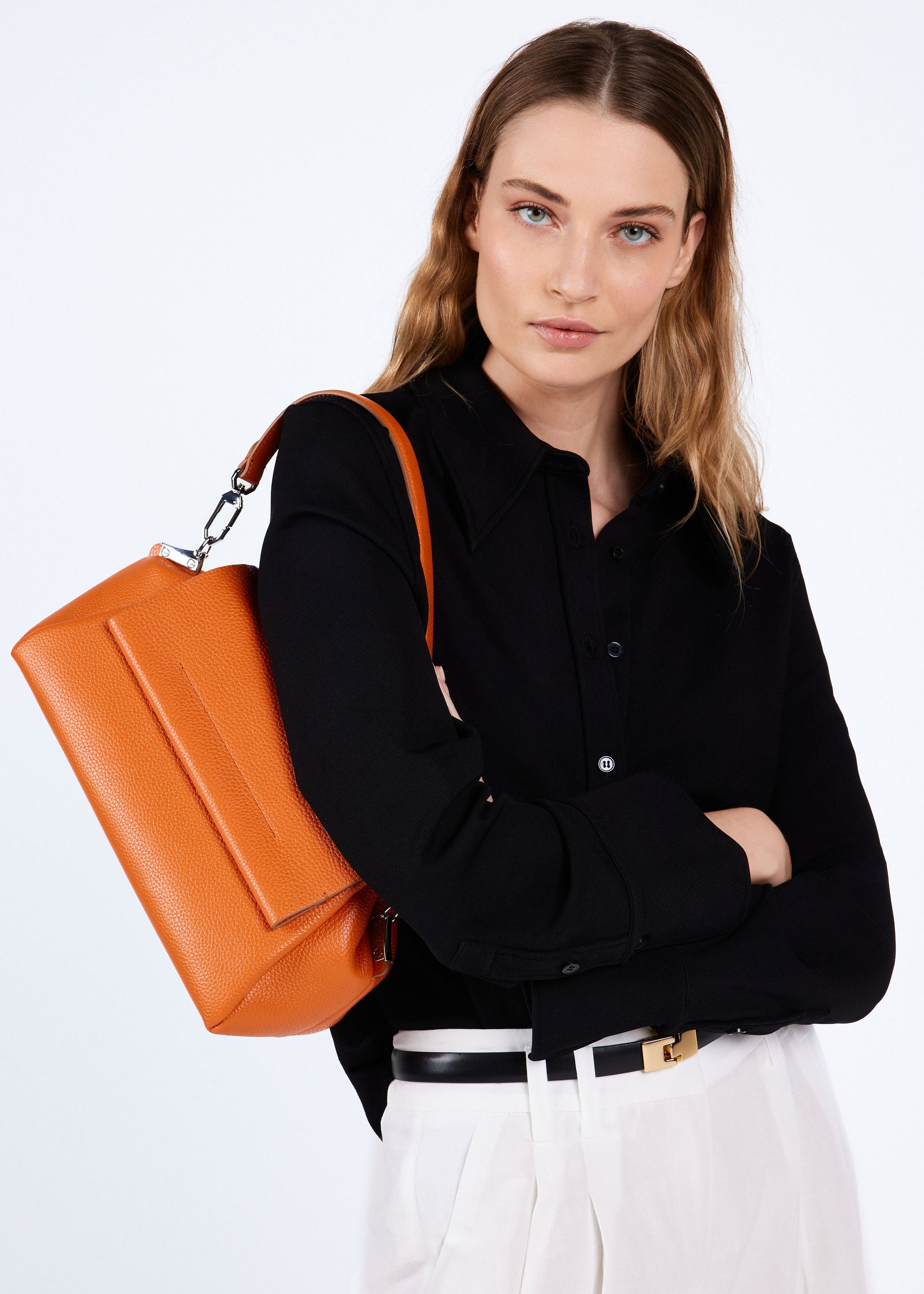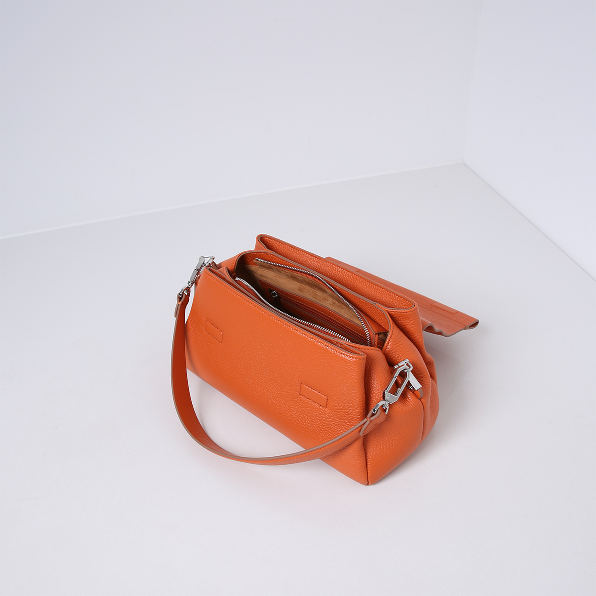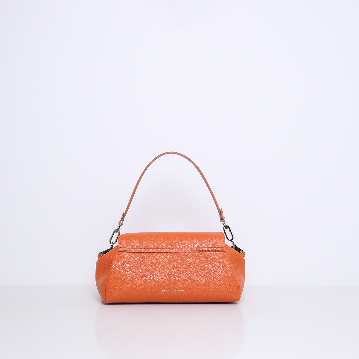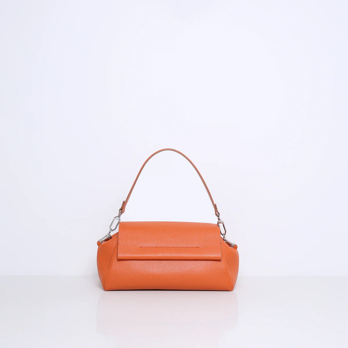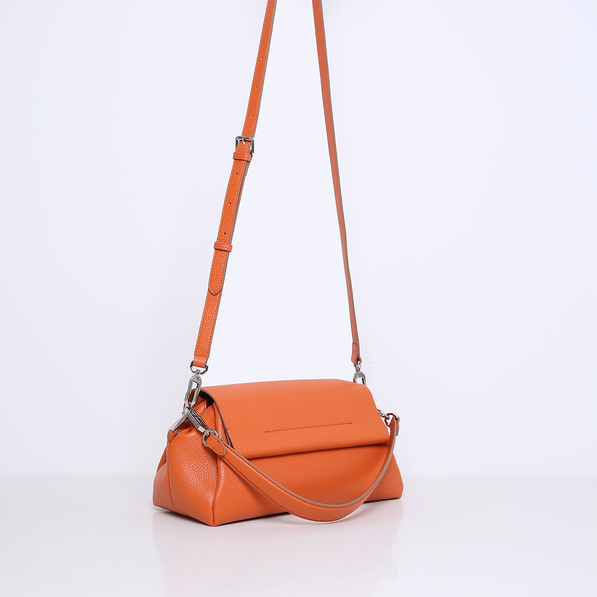 The bag comes with two detachable handles; a short shoulder strap and a long crossbody strap that is adjustable in length. The bag is made of soft and supple cowhide leather lined with suedine (viscose) material.