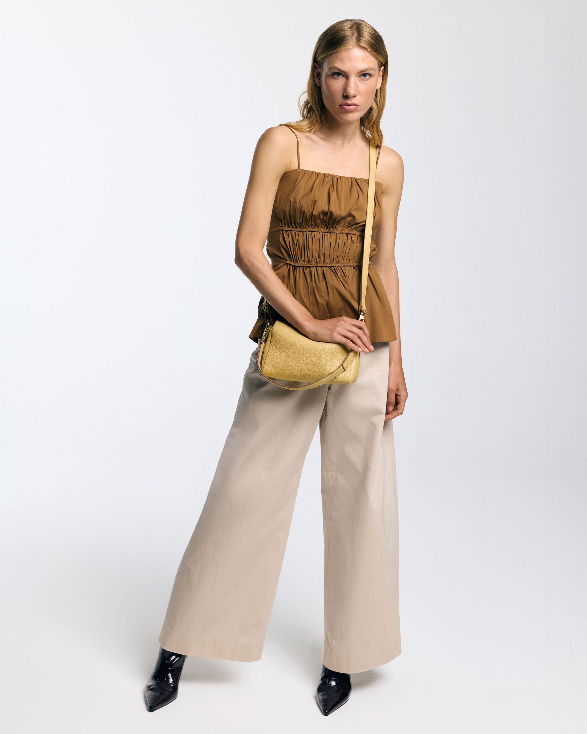 The JACK comes with a short shoulder strap so the bag falls just below the armpit. With the detachable leather shoulder strap, you can also wear the shoulder bag crossbody. Features two interior pockets and is lined with suedine (viscose) material. The bag is made of soft and supple cowhide leather.