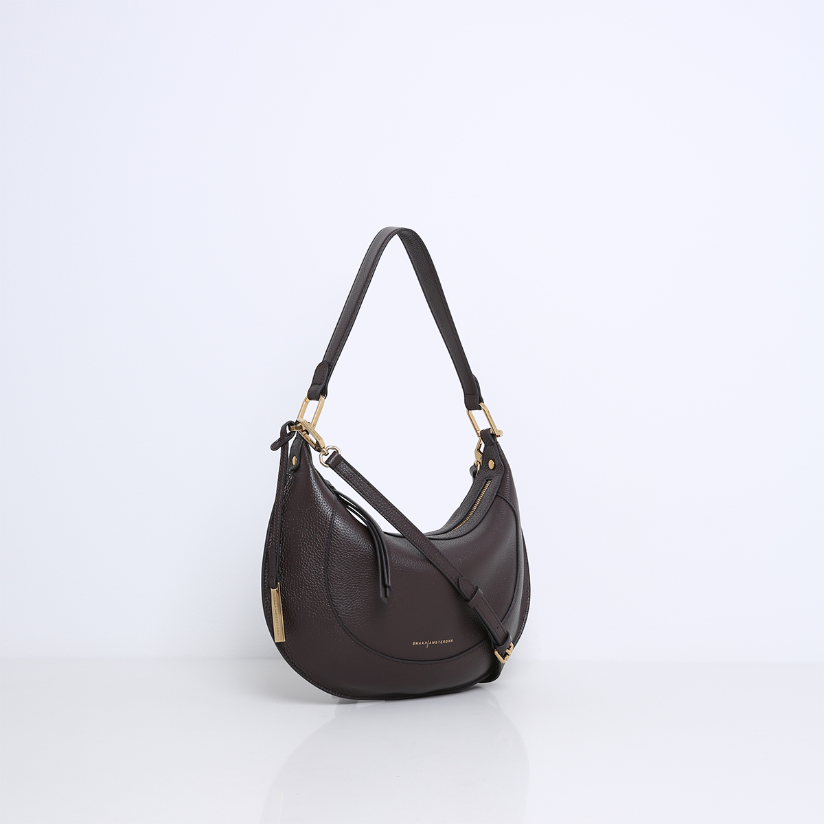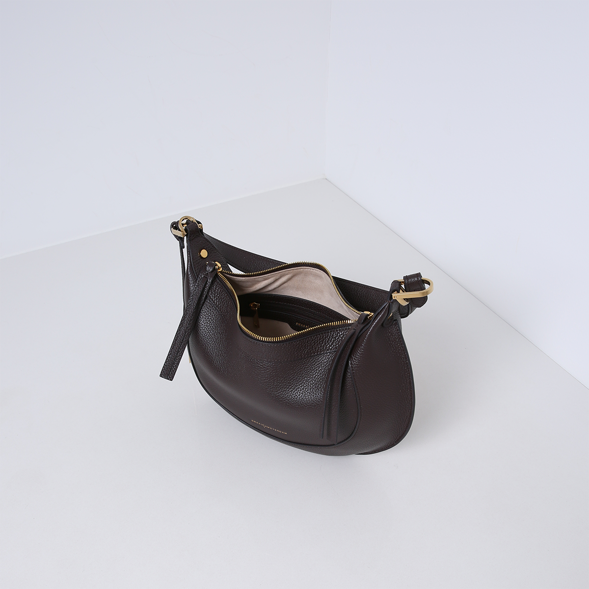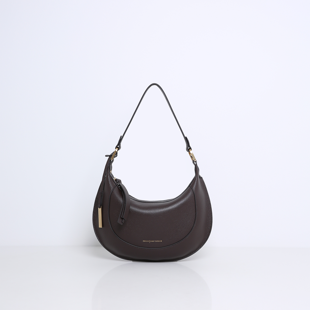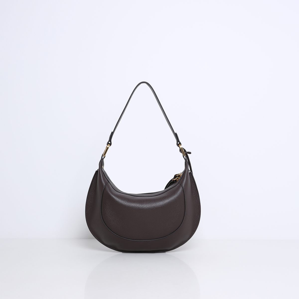 The MARLON is an elegant bag with a distinctive oval saddle bag shape that is instantly eye-catching. The bag is beautifully finished with sophisticated stitching and luxurious gold-tone hardware, creating a chic and modern look.