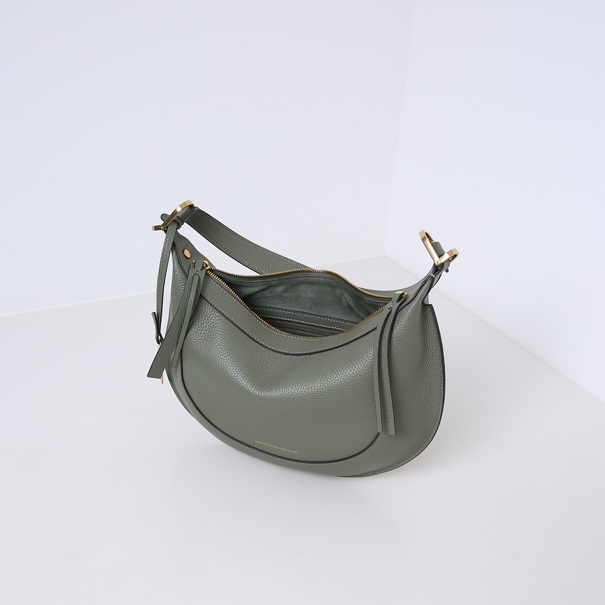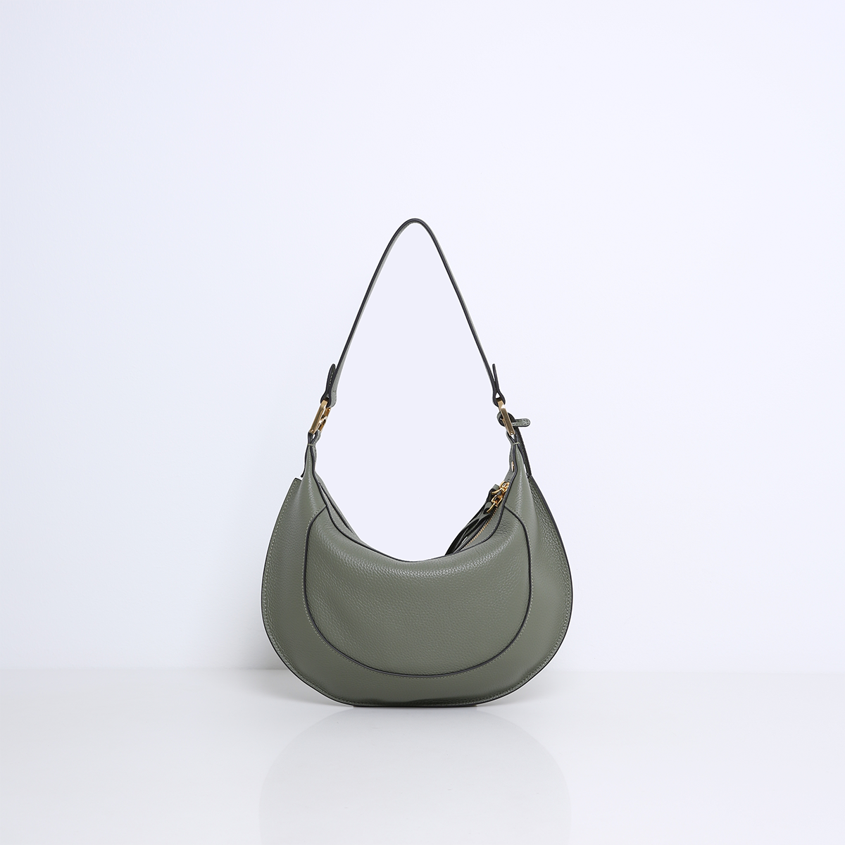 The MARLON is an elegant bag with a distinctive oval saddle bag shape that is instantly eye-catching. The bag is beautifully finished with sophisticated stitching and luxurious gold-tone hardware, creating a chic and modern look.