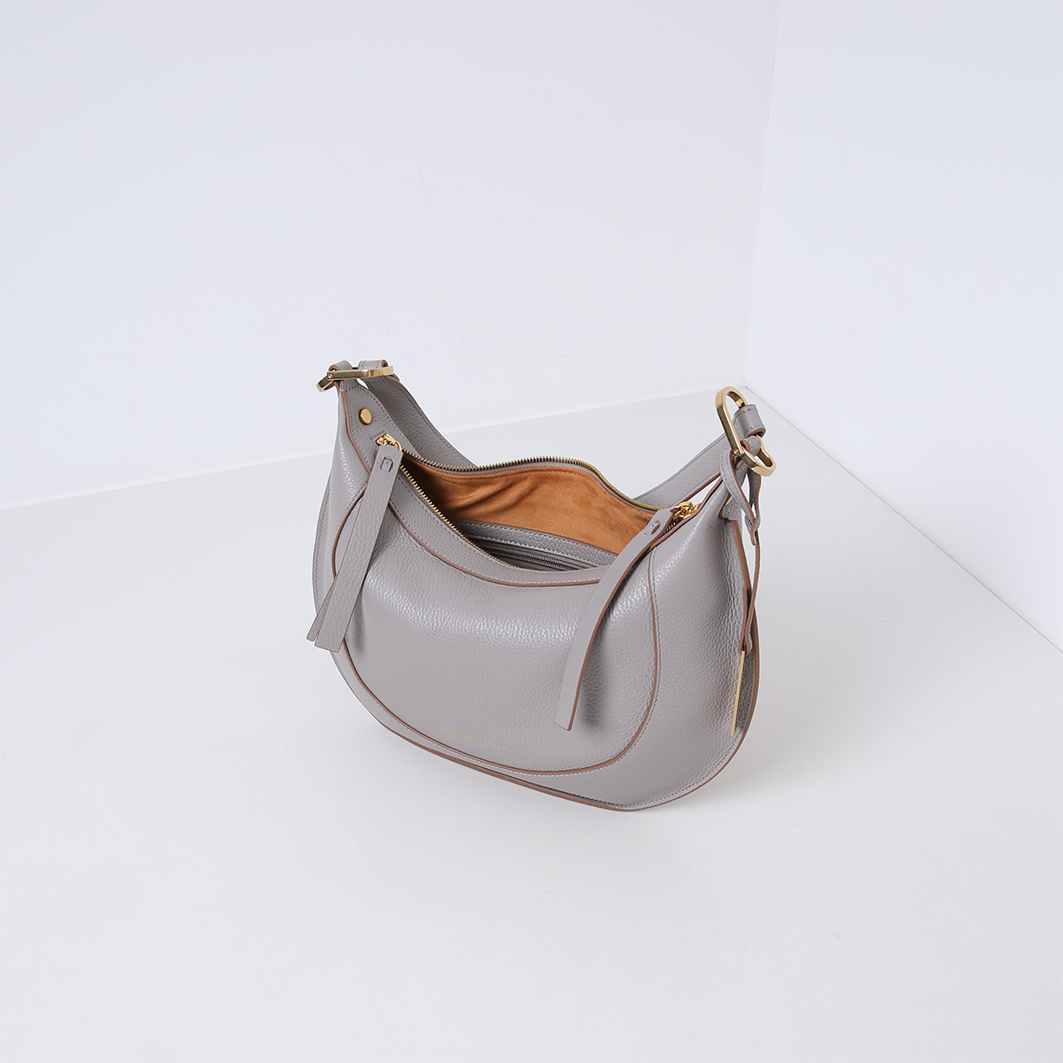The MARLON is an elegant bag with a distinctive oval saddle bag shape that is instantly eye-catching. The bag is beautifully finished with sophisticated stitching and luxurious gold-tone hardware, creating a chic and modern look.