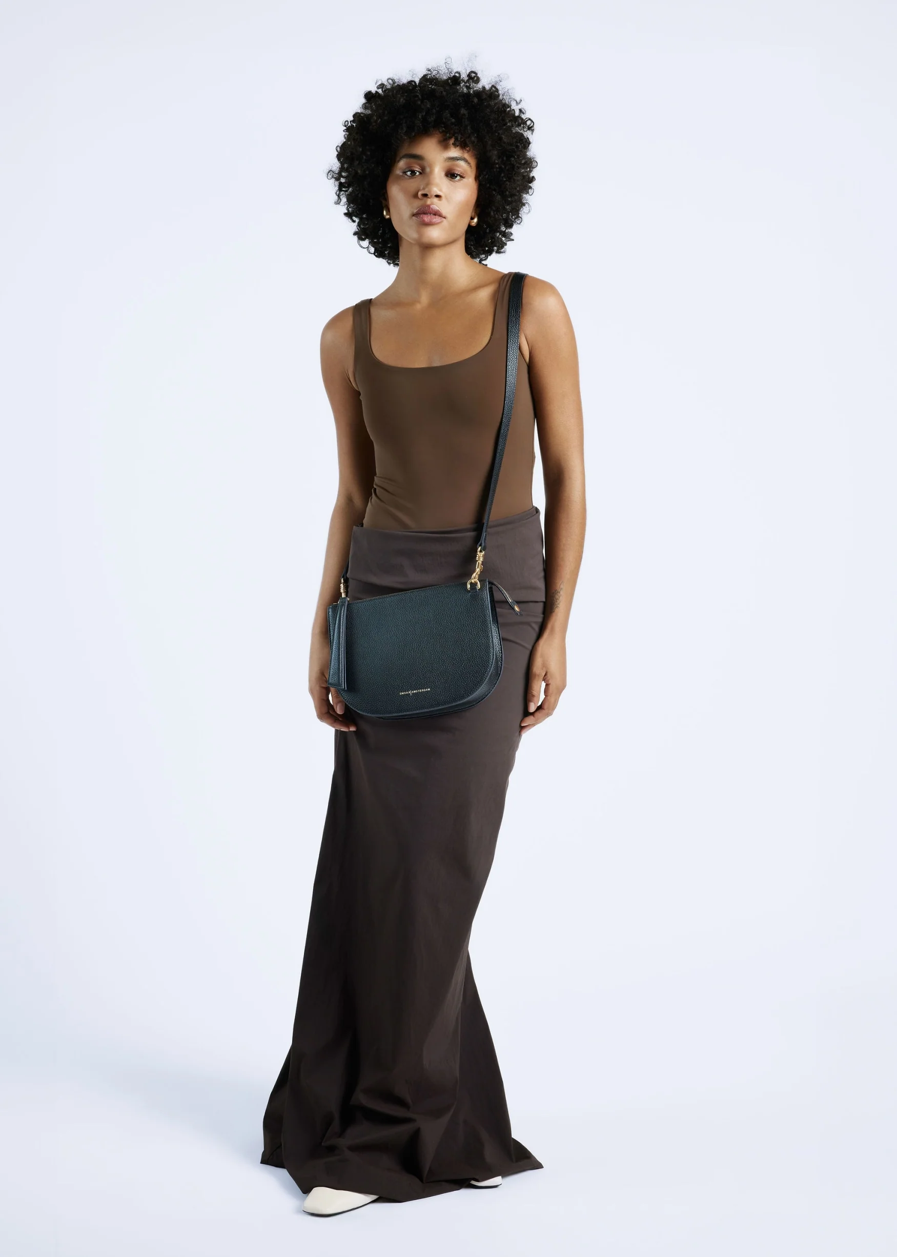 Tip: detach the leather handle from the bag and use it as a clutch evening bag.
