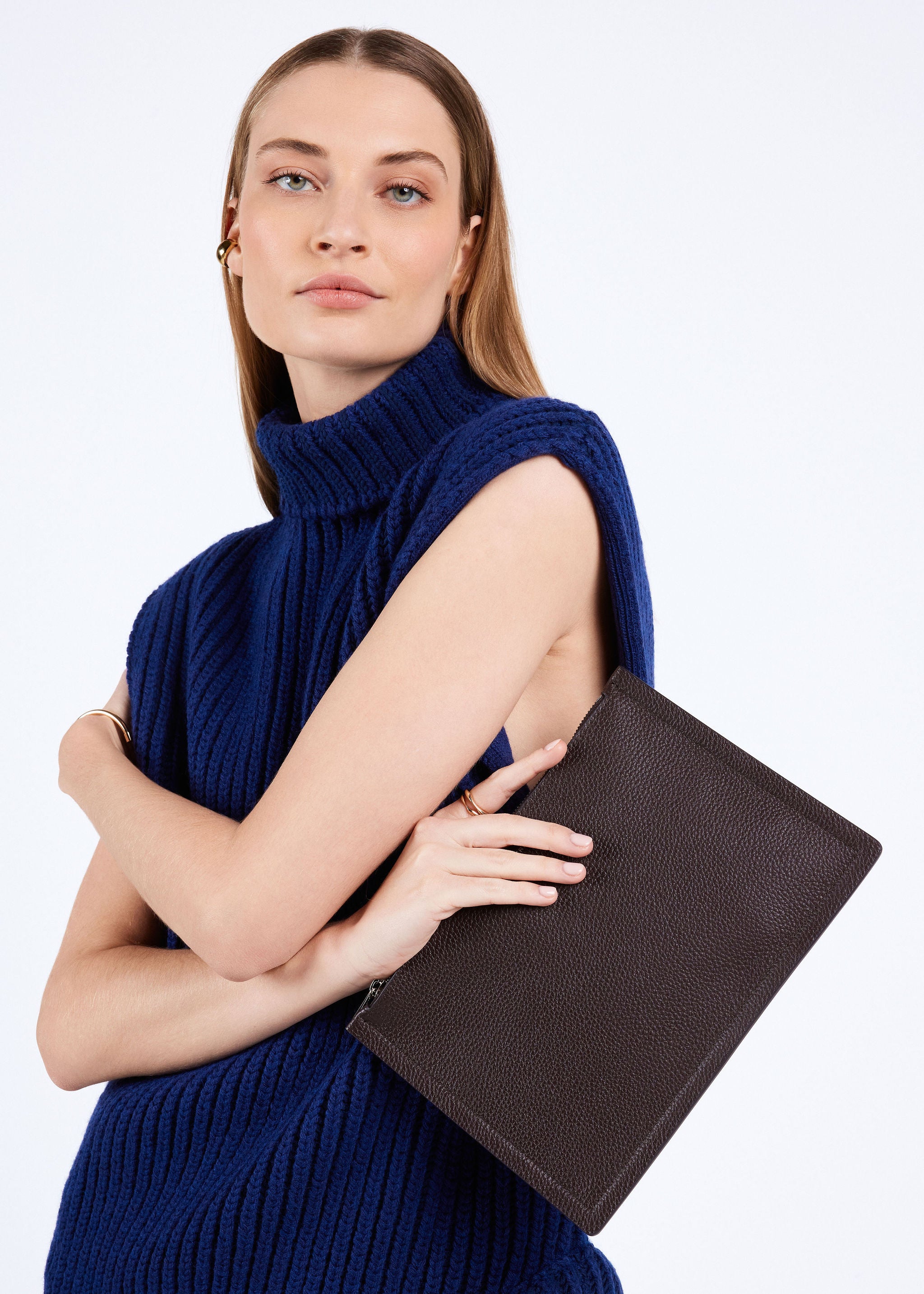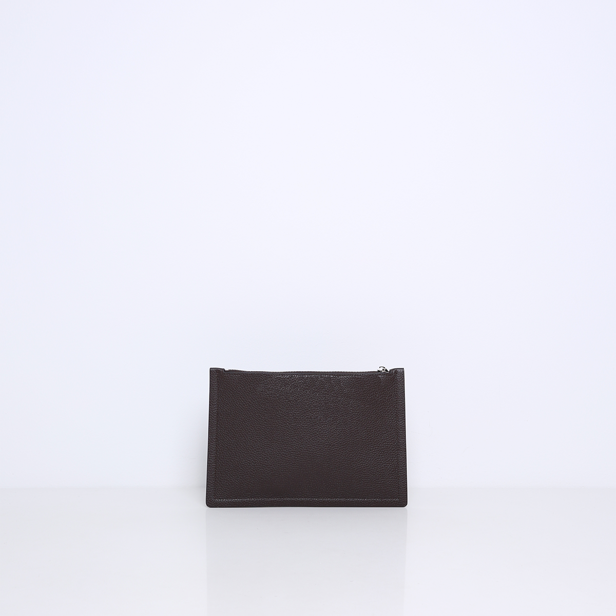 Discover our versatile leather pouch, perfect to use as a clutch or as an extra inner bag. This stylish pouch has no extra interior pockets, keeping it wonderfully spacious and simple. The inside is lined with luxurious suedine (viscose) material, providing a soft touch and extra protection for your belongings. The zipper at the top ensures everything is securely stored. Thanks to its flat design, this pouch fits easily into larger bags, while as a clutch it is an elegant addition to any outfit.