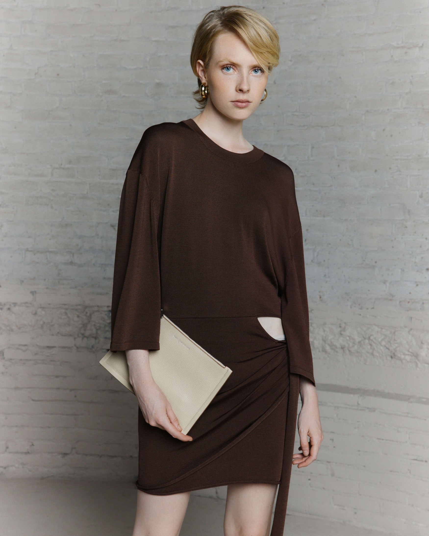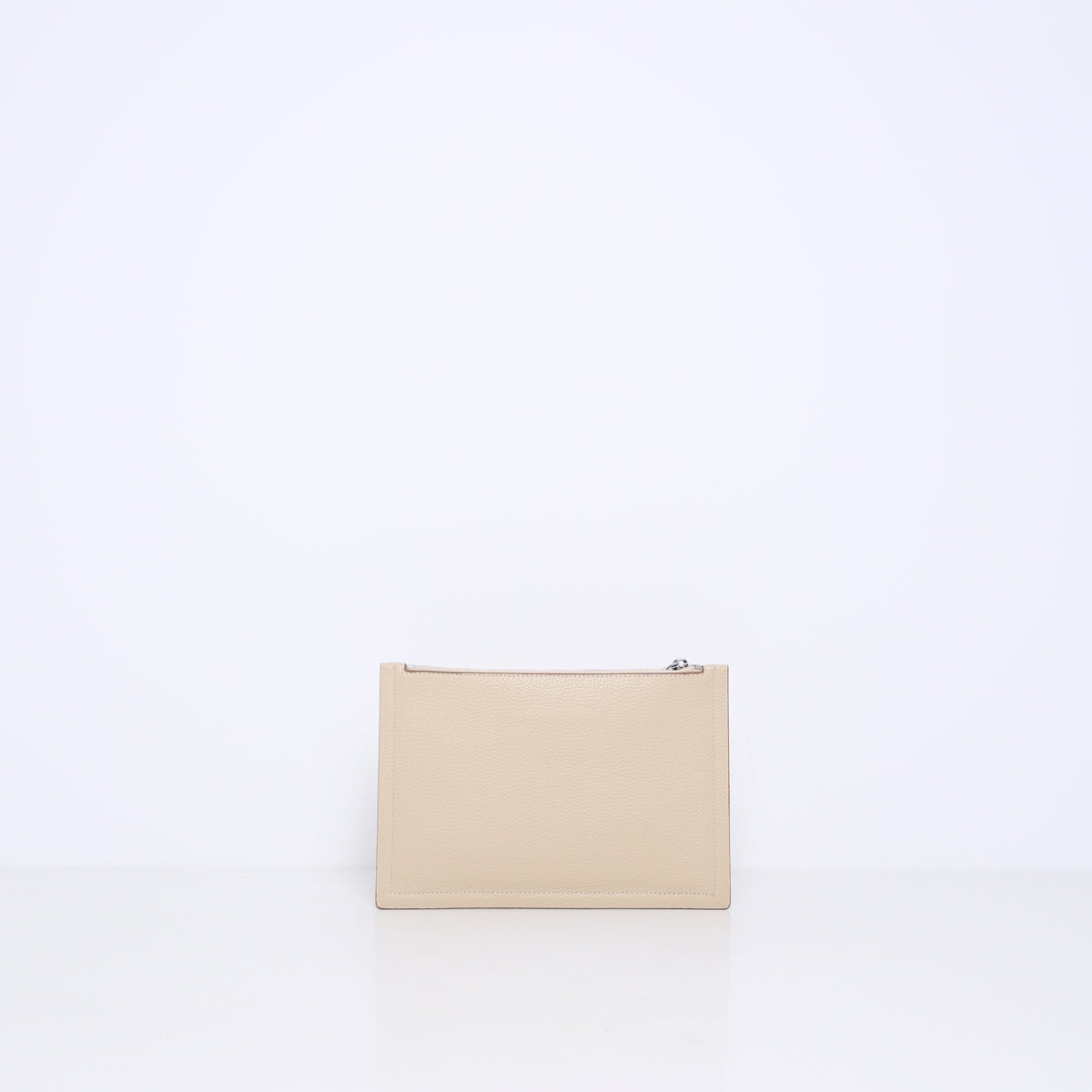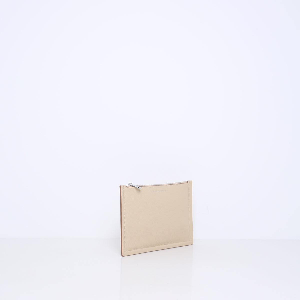 Discover our versatile leather pouch, perfect to use as a clutch or as an extra inner bag. This stylish pouch has no extra interior pockets, keeping it wonderfully spacious and simple. The inside is lined with luxurious suedine (viscose) material, providing a soft touch and extra protection for your belongings. The zipper at the top ensures everything is securely stored. Thanks to its flat design, this pouch fits easily into larger bags, while as a clutch it is an elegant addition to any outfit.