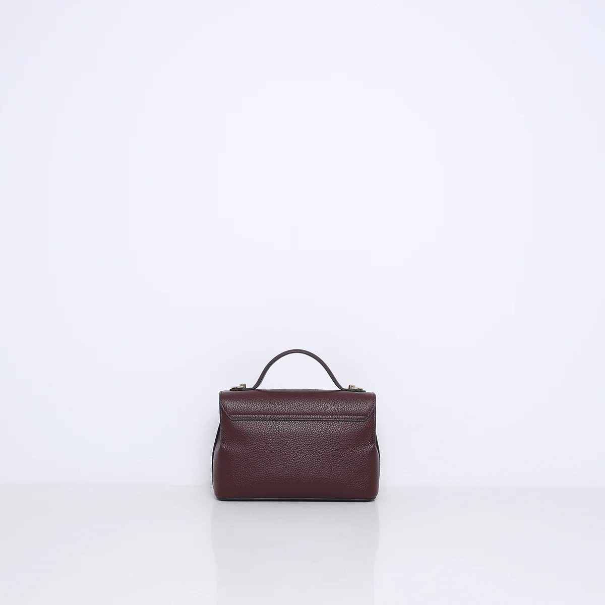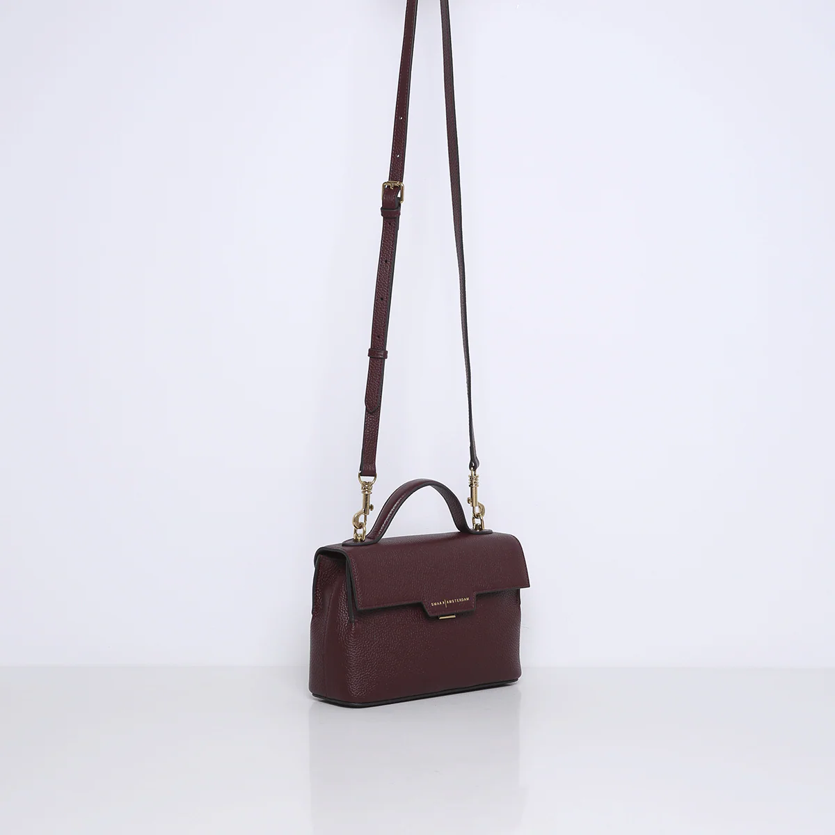 The FLORA has a short handle and a detachable leather crossbody strap that attaches to the top. The handbag opens at the front with a snap closure. There's plenty of room for all your essentials, such as a phone, wallet, (sun)glasses, and keys. Its rectangular, open shape allows for easy and organized access to your belongings.