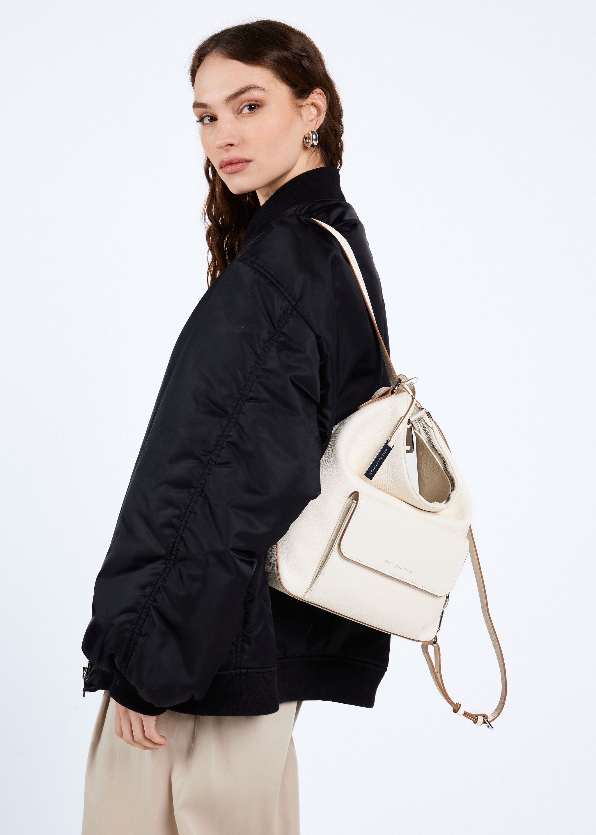The front features an extra pocket with a magnetic closure. When carrying the bag on your back, you can fold this pocket inward to keep all your belongings safely stored.