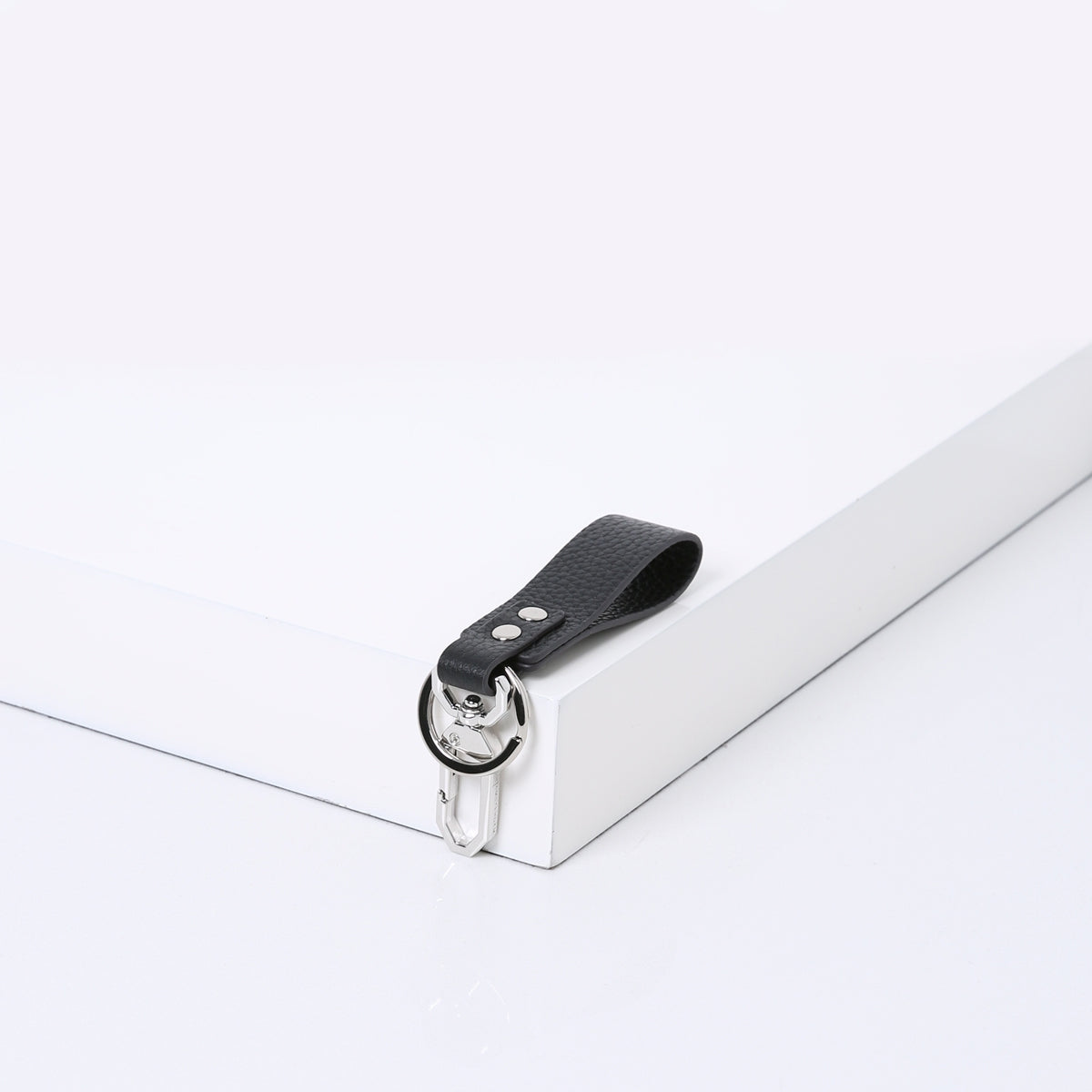 What's unique about this classic keychain is that it features an extra hook next to the ring, subtly engraved with a logo. This allows you to easily clip the key ring to your bag or belt loop, for example.