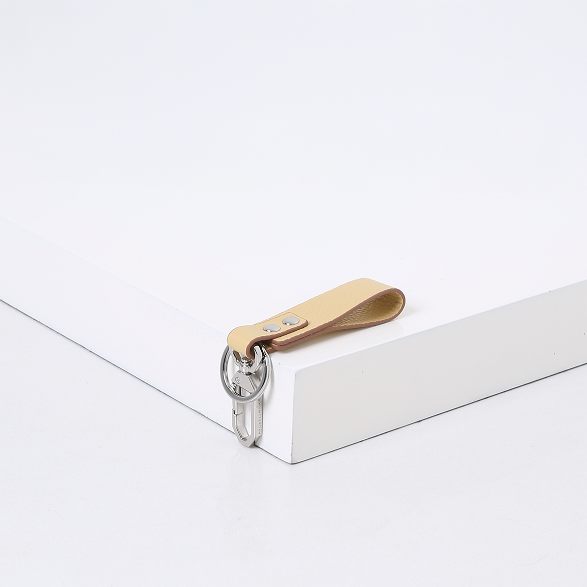 What's unique about this classic keychain is that it features an extra hook next to the ring, subtly engraved with a logo. This allows you to easily clip the key ring to your bag or belt loop, for example.