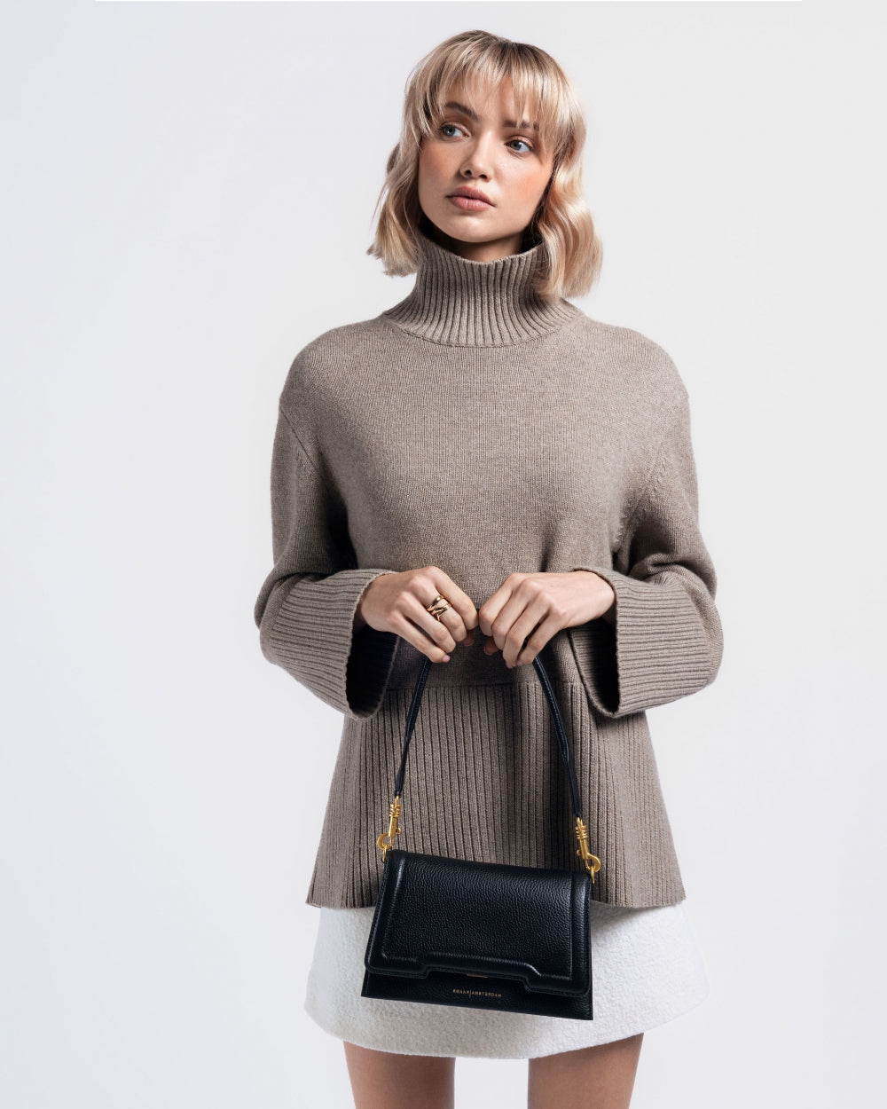 The design offers a comfortable grip and beautiful details on the shoulder strap. A unique feature of the design is the compartment layout, inspired by an accordion.