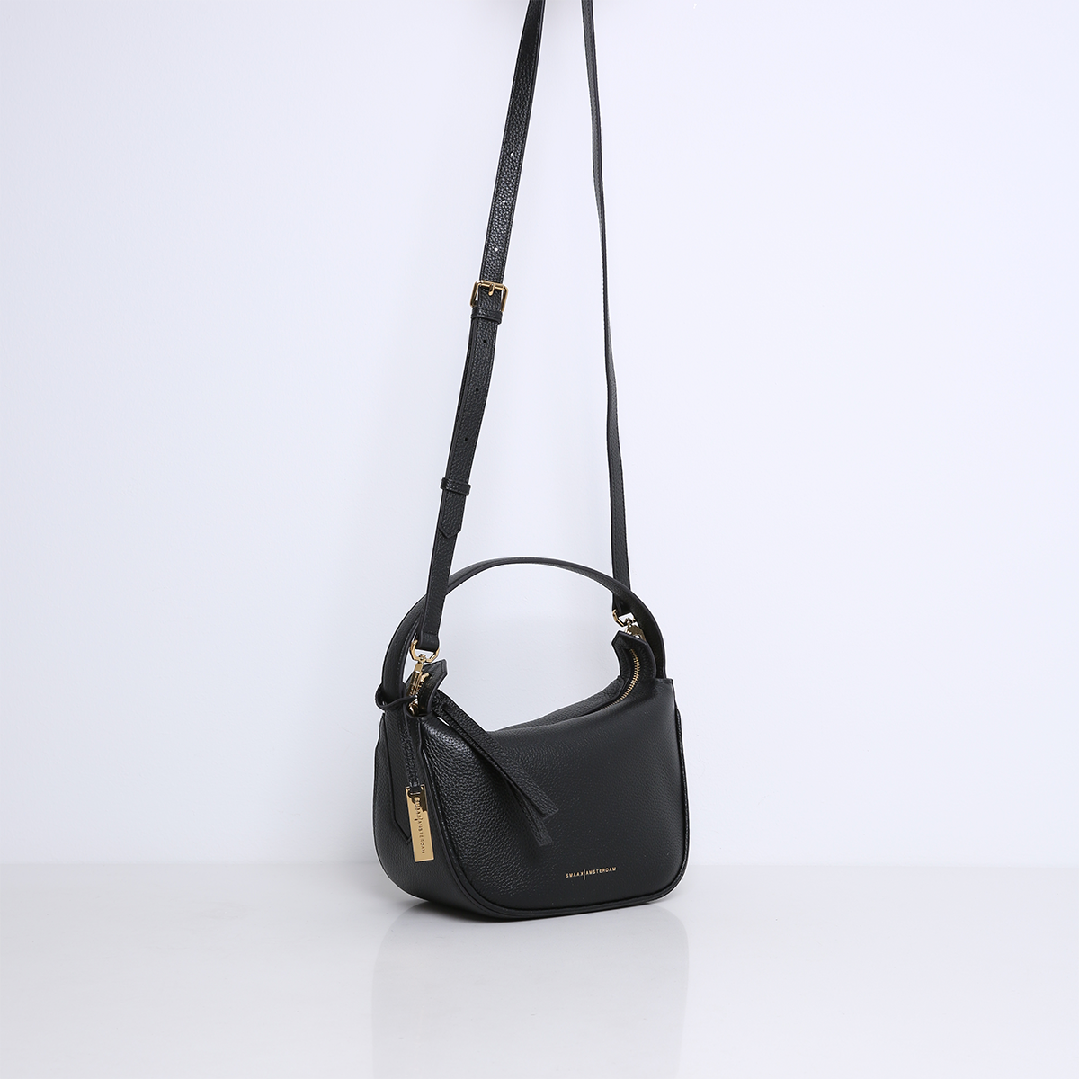 The DANIEL is the smaller version of our elegant MONROE bag, a compact hobo bag that perfectly combines style and practicality. The bag features a refined finish with a luxurious gold-tone zipper and a fixed, short strap, allowing you to comfortably carry it over your shoulder. It also comes with an extra-long strap, making it easy to wear crossbody.