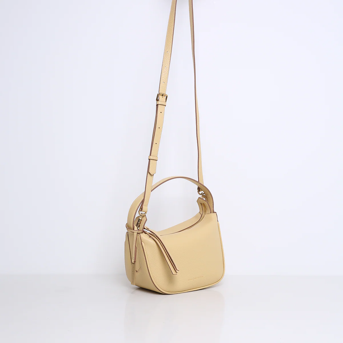 The DANIEL is the smaller version of our elegant MONROE bag, a compact hobo bag that perfectly combines style and practicality. The bag features a refined finish with a luxurious gold-tone zipper and a fixed, short strap, allowing you to comfortably carry it over your shoulder. It also comes with an extra-long strap, making it easy to wear crossbody.