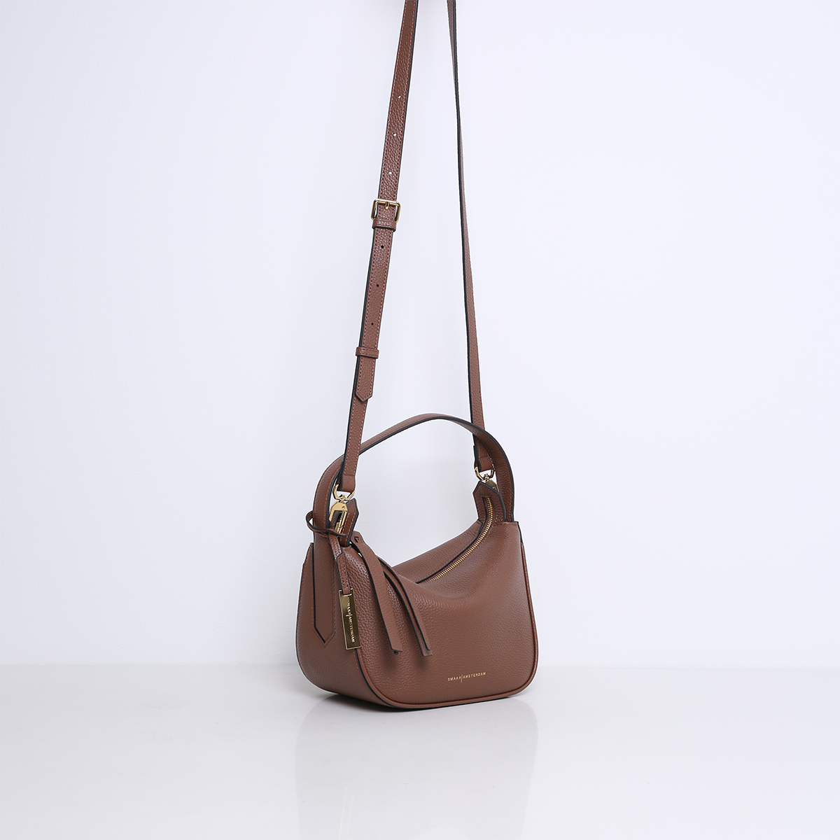 The DANIEL is the smaller version of our elegant MONROE bag, a compact hobo bag that perfectly combines style and practicality. The bag features a refined finish with a luxurious gold-tone zipper and a fixed, short strap, allowing you to comfortably carry it over your shoulder. It also comes with an extra-long strap, making it easy to wear crossbody.
