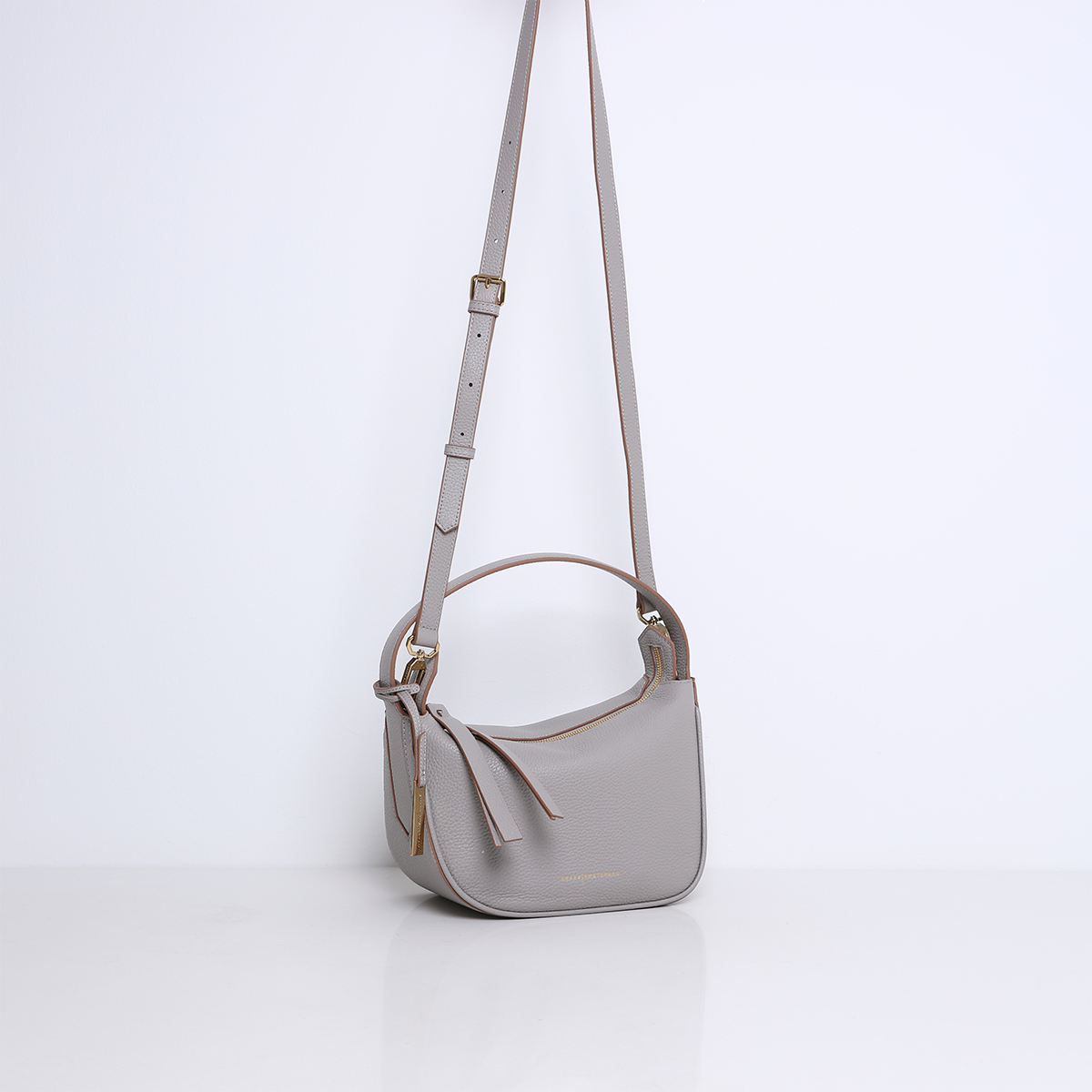 The DANIEL is the smaller version of our elegant MONROE bag, a compact hobo bag that perfectly combines style and practicality. The bag features a refined finish with a luxurious gold-tone zipper and a fixed, short strap, allowing you to comfortably carry it over your shoulder. It also comes with an extra-long strap, making it easy to wear crossbody.