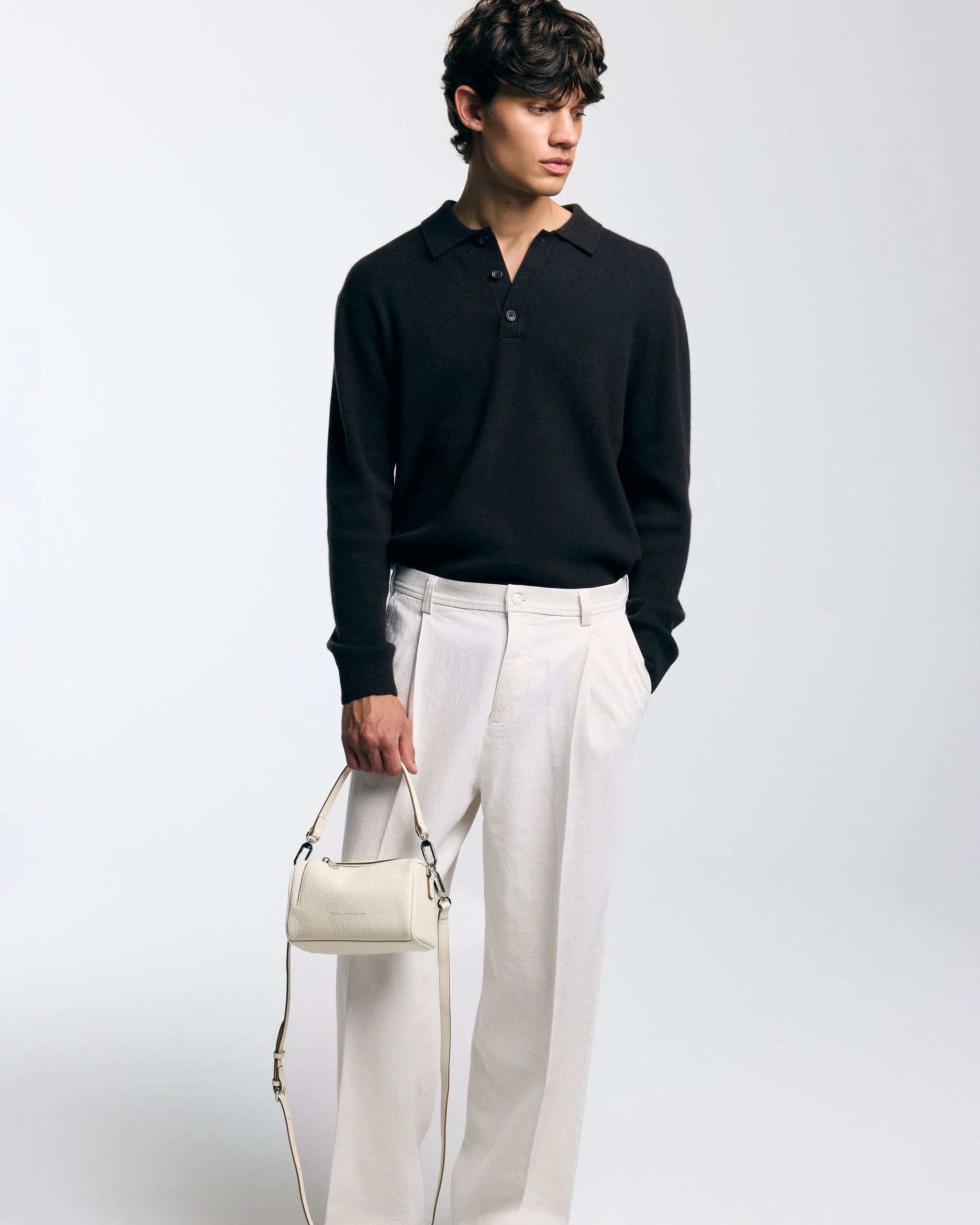 The FIGU closes at the top with a zipper and features an additional front gusset for a playful and contemporary look. Inside, the bag offers ample space for all your daily essentials. It has no internal pockets for a spacious feel. Crafted from soft, supple cowhide leather, the bag is a versatile addition to any wardrobe.