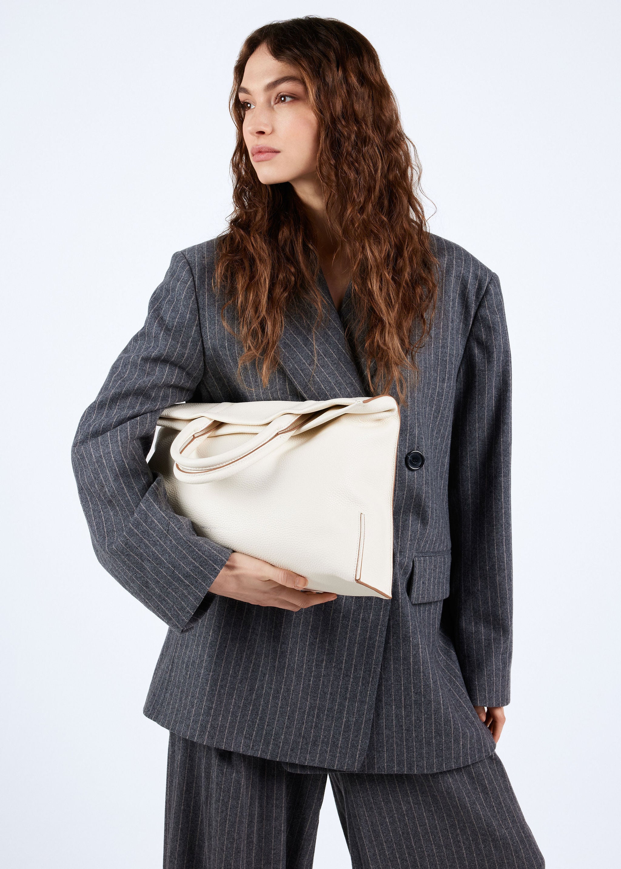 The timeless and versatile design of this medium-sized leather handbag makes it suitable for a variety of occasions, from work to casual outings and even evening activities. The bag folds in half, allowing you to carry it casually as a large clutch; an essential accessory for any style-conscious person's wardrobe.
