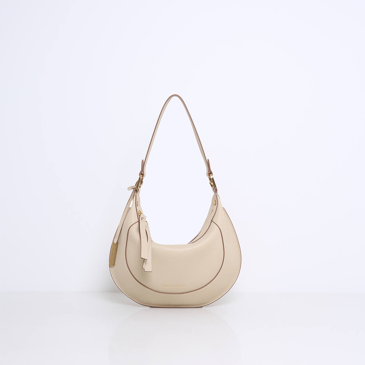 The MARLON is an elegant bag with a striking, oval saddlebag shape that immediately catches the eye. The bag is beautifully finished with refined stitching and luxurious gold-tone hardware, creating a chic and modern look.