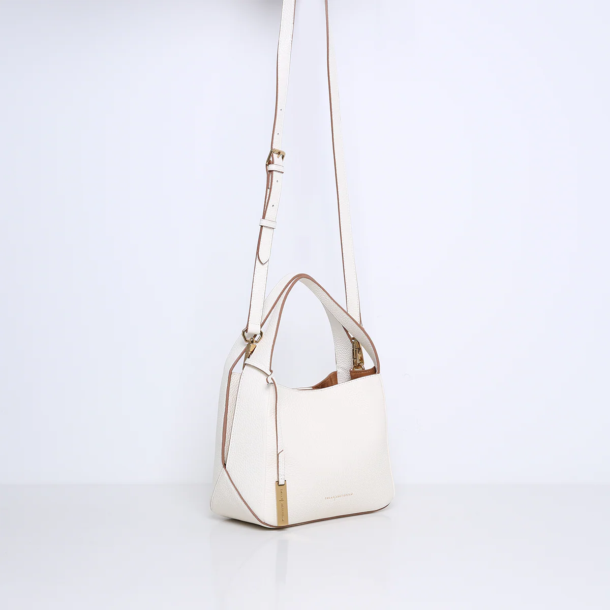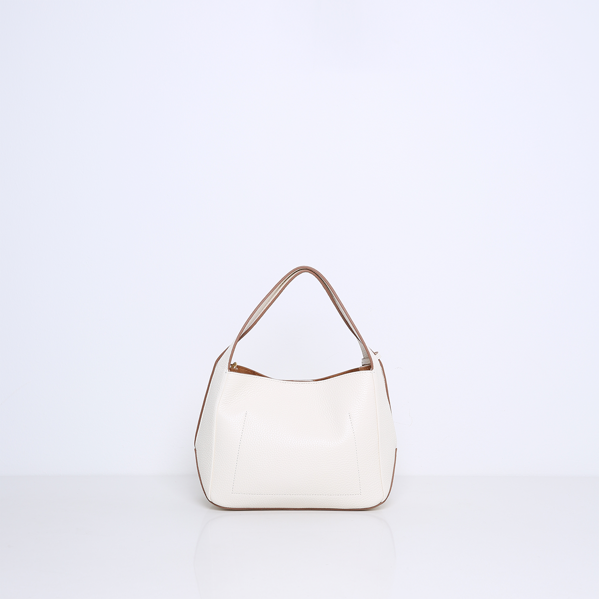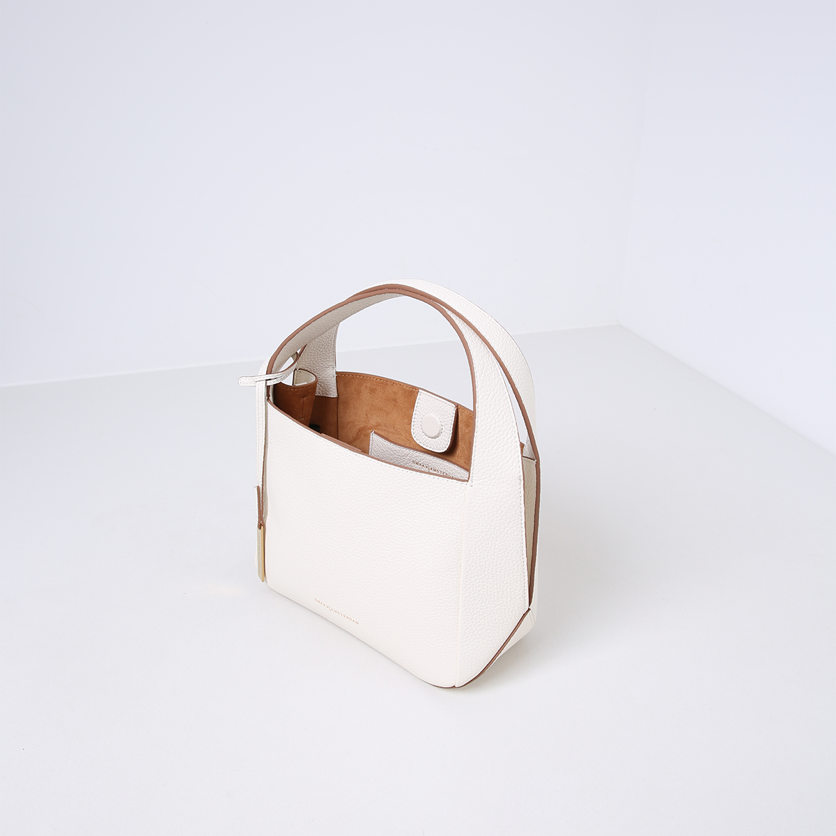 The bag has an open top that closes with a discreet magnetic closure, allowing quick and easy access to your belongings while keeping them safely stored. This medium-sized model is perfect for everyday use, with plenty of room for all your essentials without being too large or bulky. The bag can be carried either by hand or crossbody thanks to a removable and adjustable shoulder strap.
